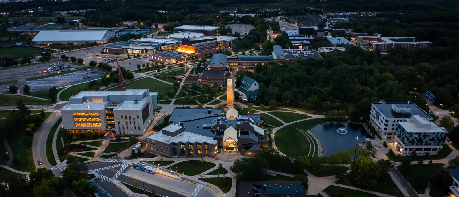 The Allendale Campus of Grand Valley State University in the minutes just before dawn.
