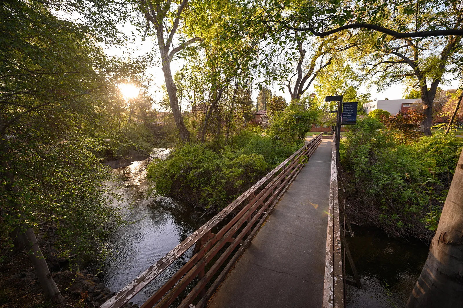 An early morning view of Big Chico Creek that flows near a bridge on campus on Friday, March 27, 2020.
