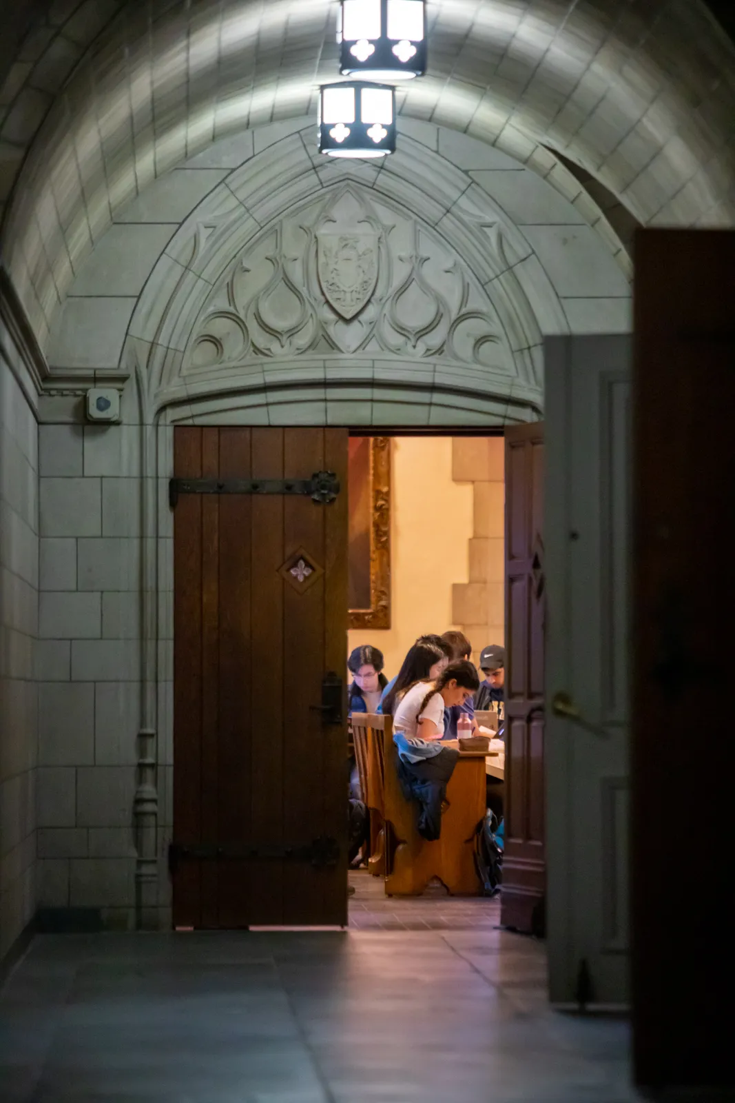 Students engage in class work inside of the English Nationality Room.