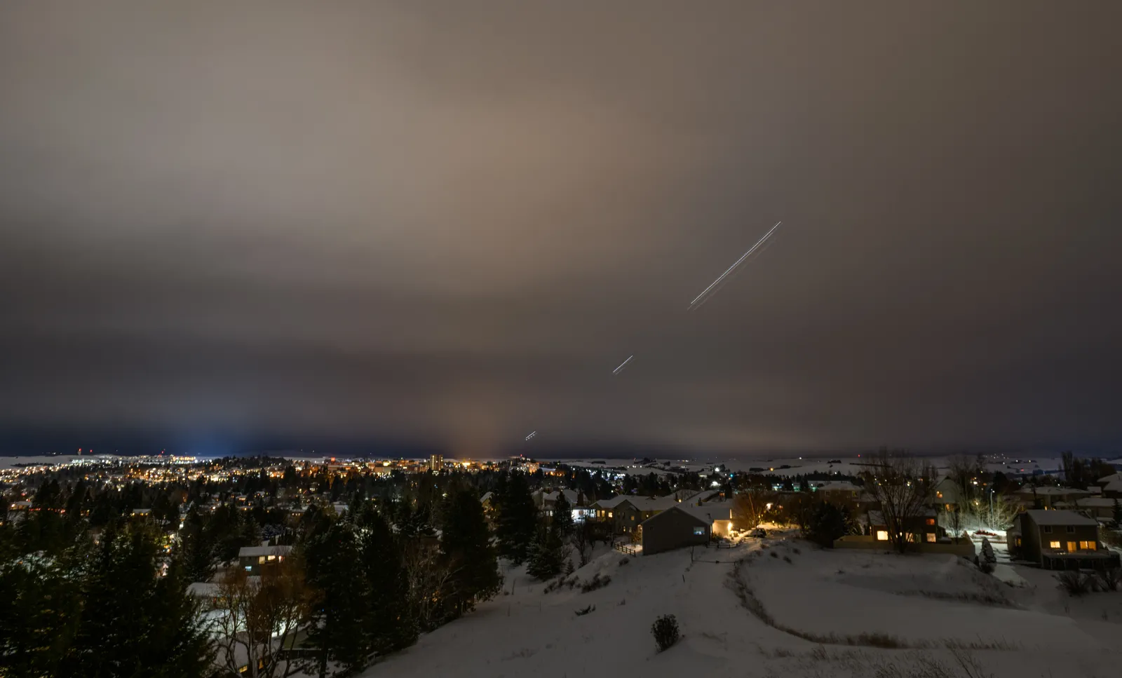 Washington State University and the College Hill area while a Horizon Air flight lands at the Pullman-Moscow Regional Airport as seen from Sunnyside Hill by the Campus View Street water tower, Wednesday, Jan. 15, 2020 in Pullman, Wash.