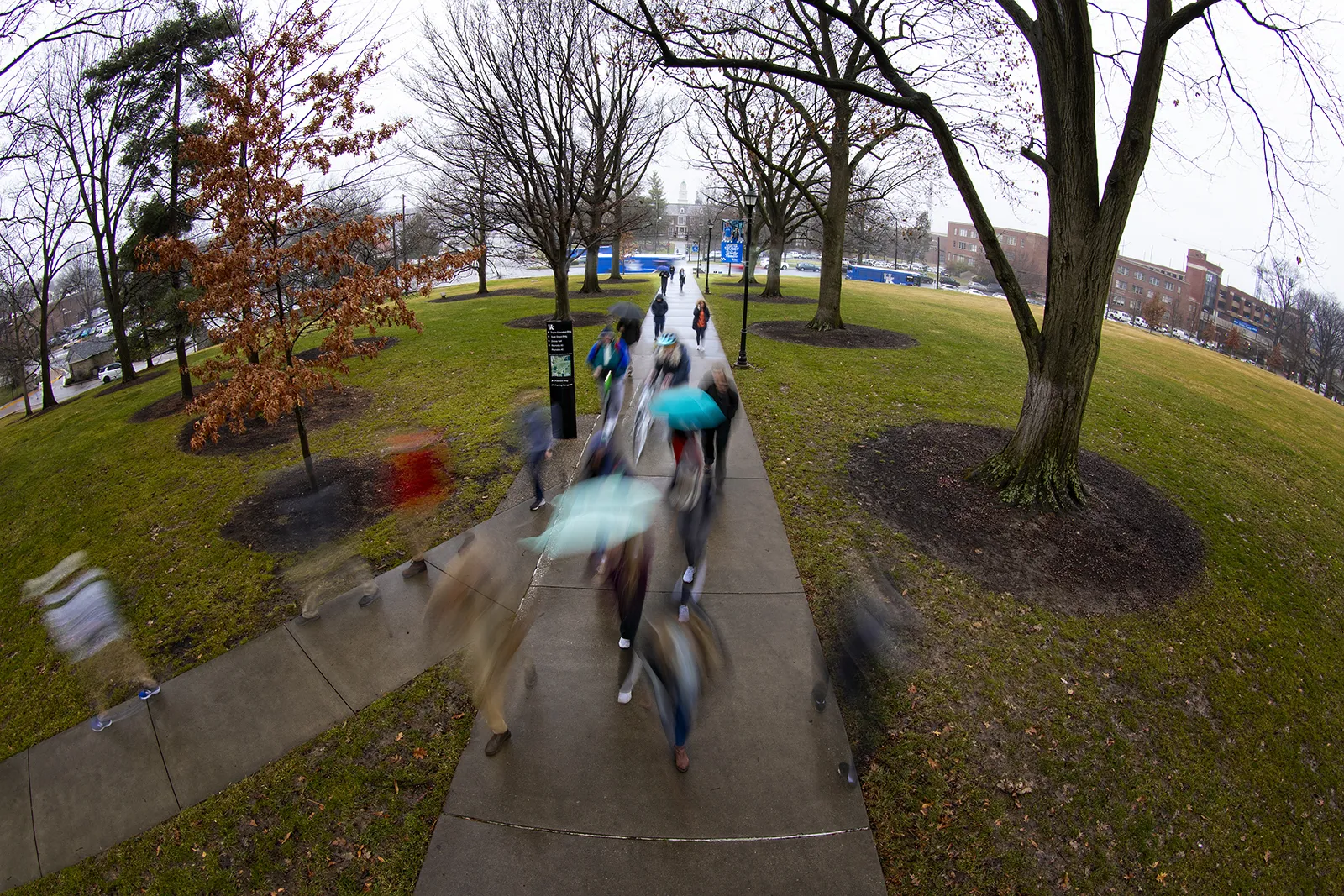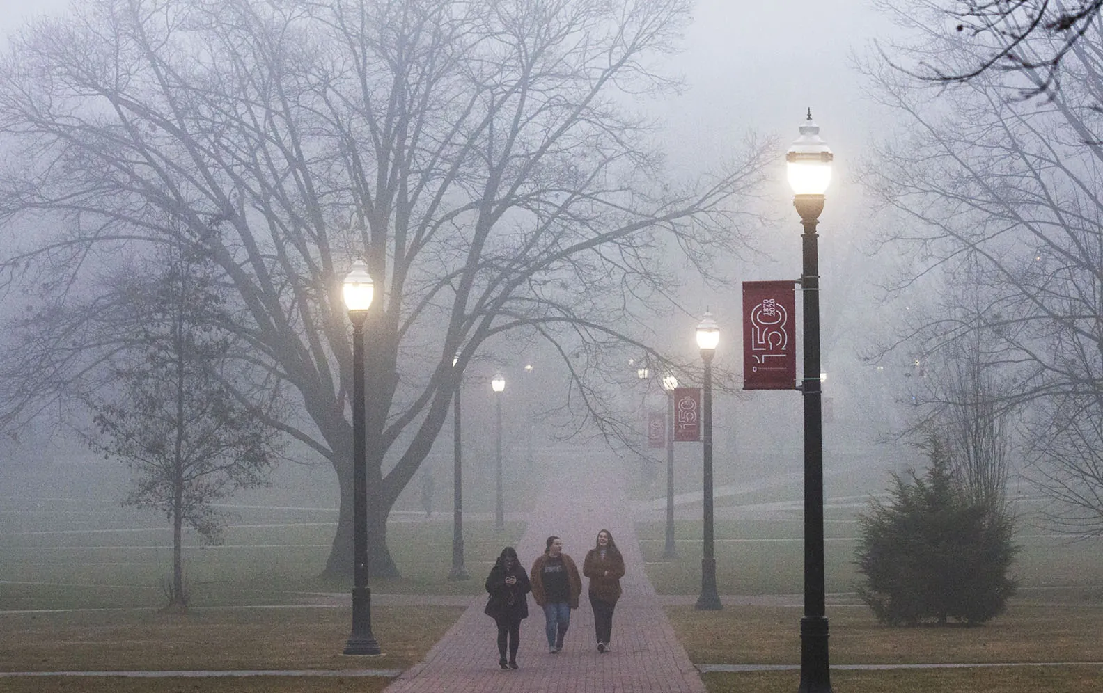 Fog covers the campus as students walk through the Oval Wednesday January 15, 2020.