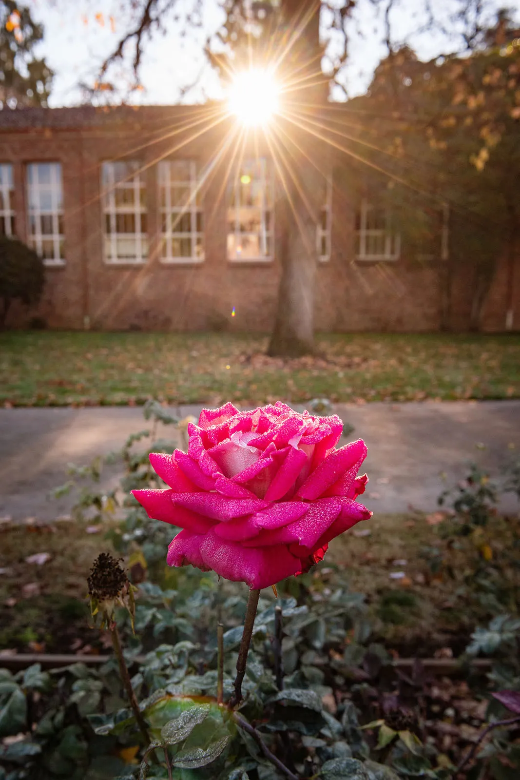 Morning dew on the roses in the George Petersen Rose Garden on Monday, December 16, 2019.