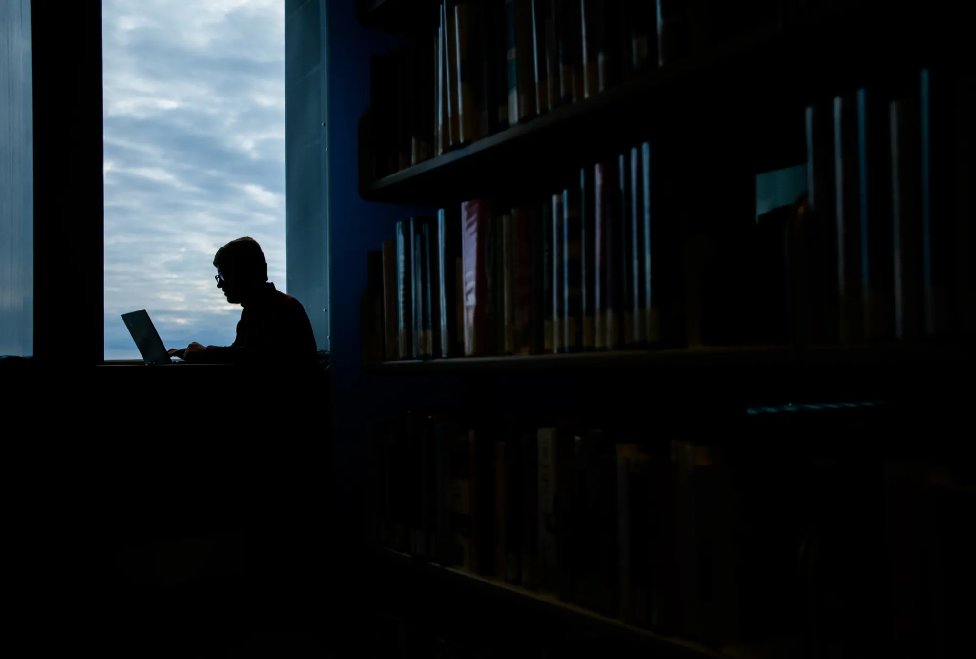 Morgan Wilder, a junior psychology major, studies among the stacks at Grand Valley State University's Mary Idema Pew Library.