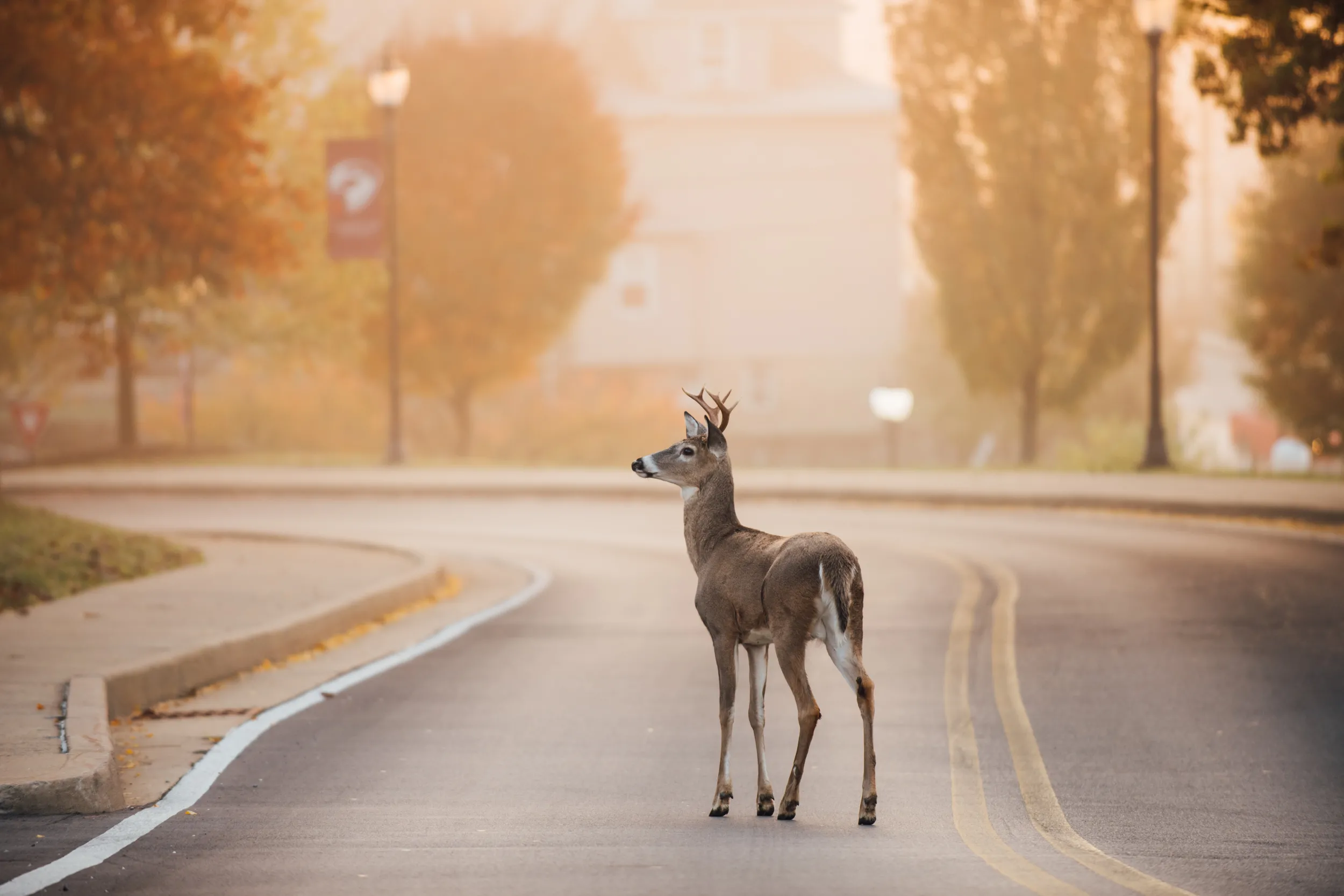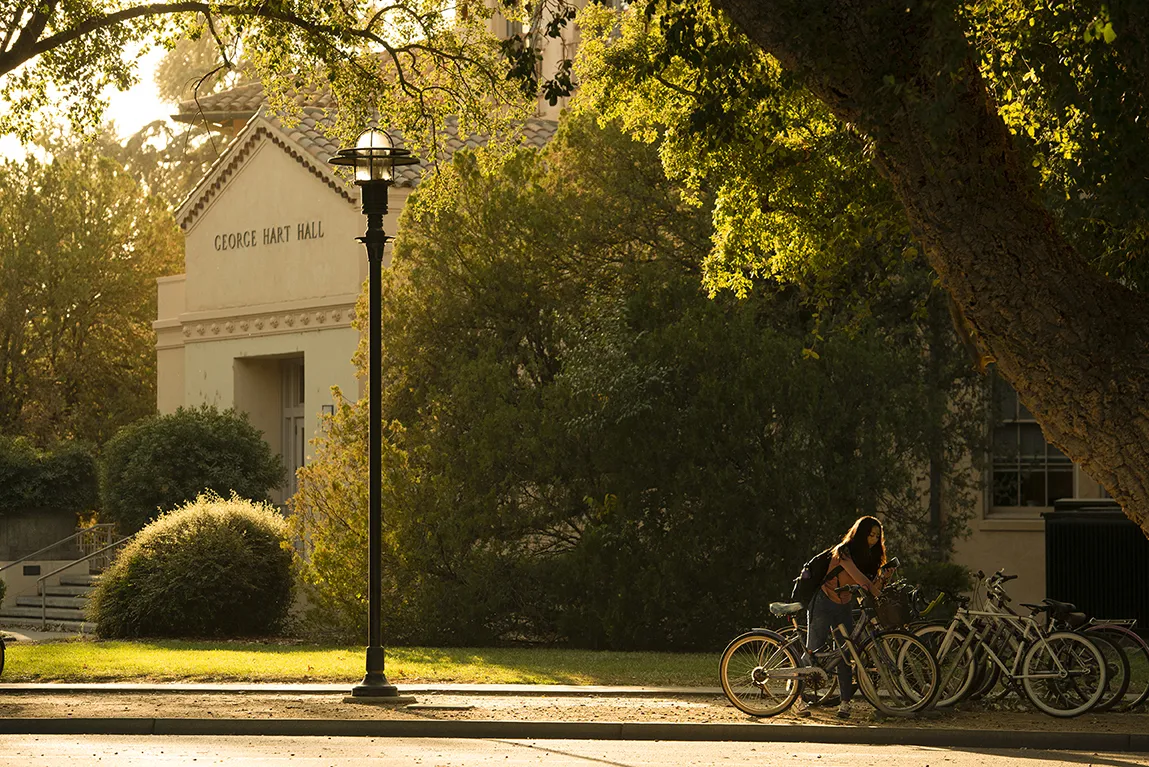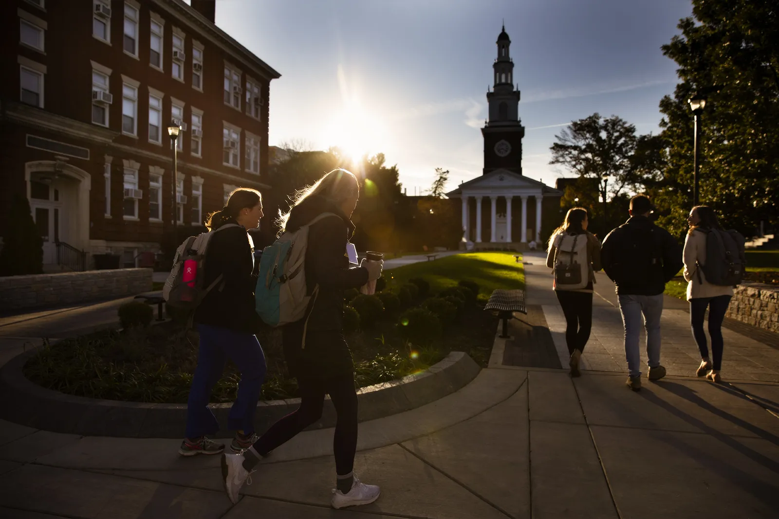 A student makes his way to class as the campus shows off its fall wardrobe.