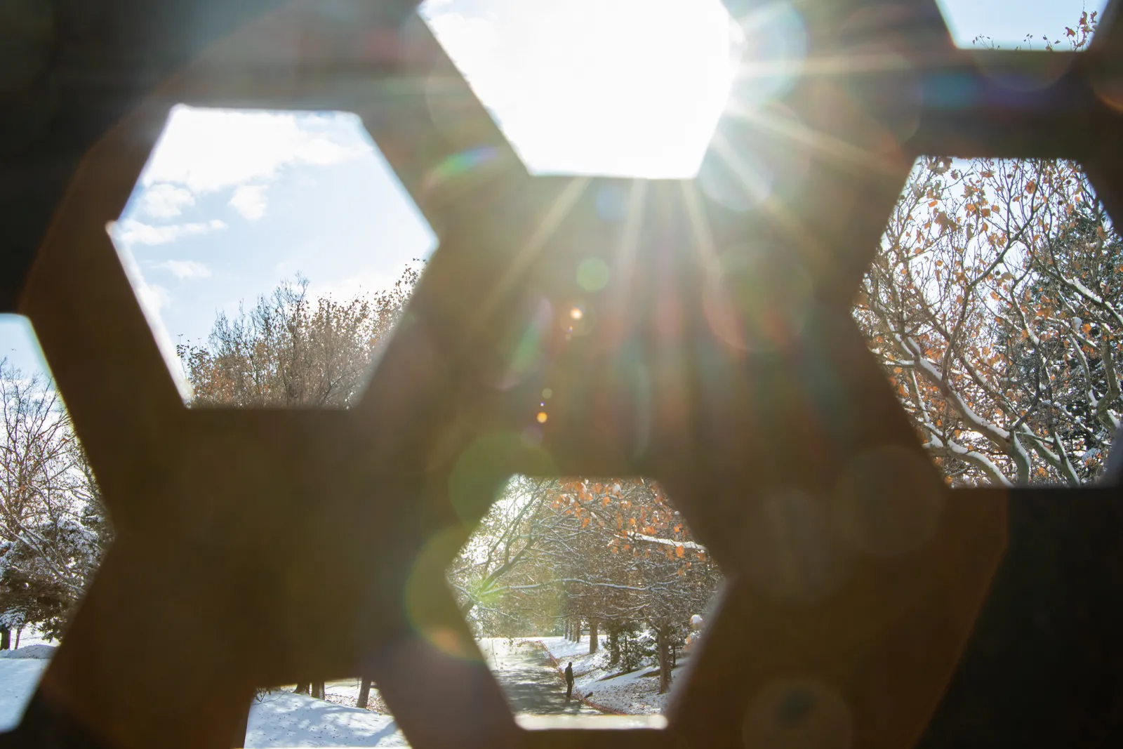 A runner warms up on the street outside of the Ora R. "Dick" and Edna Ione Hall Sculpture Garden at Weber State University on Tuesday, November 26, 2019.