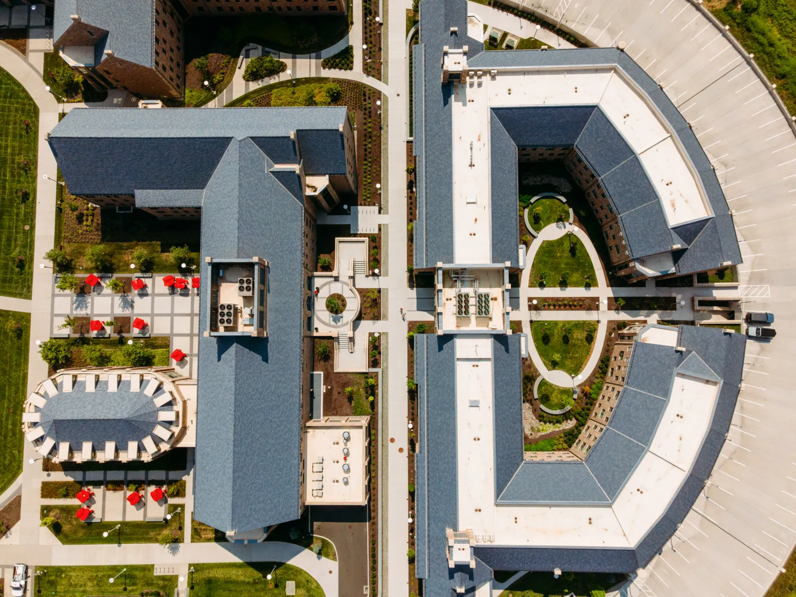 Aerial campus scenes taken of Pioneer Village on Thursday, Aug. 7, 2025 at Sacred Heart University.