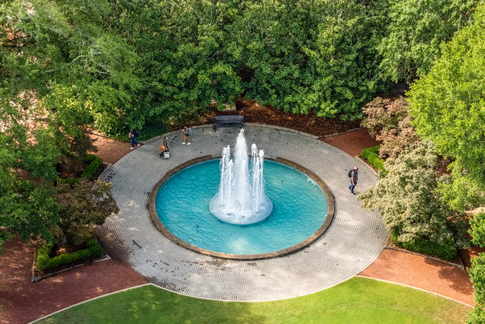 Aerial view of Herty Fountain on North Campus during the first day of class.