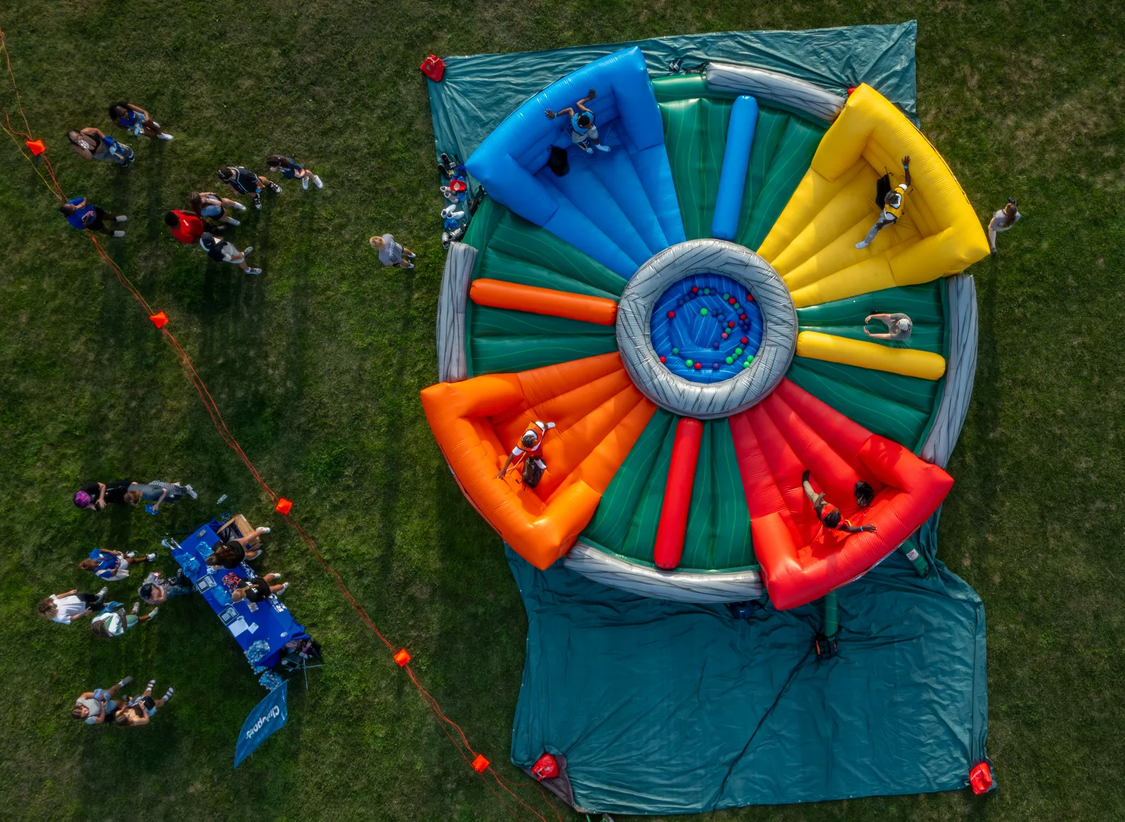 From a drone’s perspective, students enjoy inflatable games during the Laker Kickoff event on the Kirkhof Center lawn on August 22.