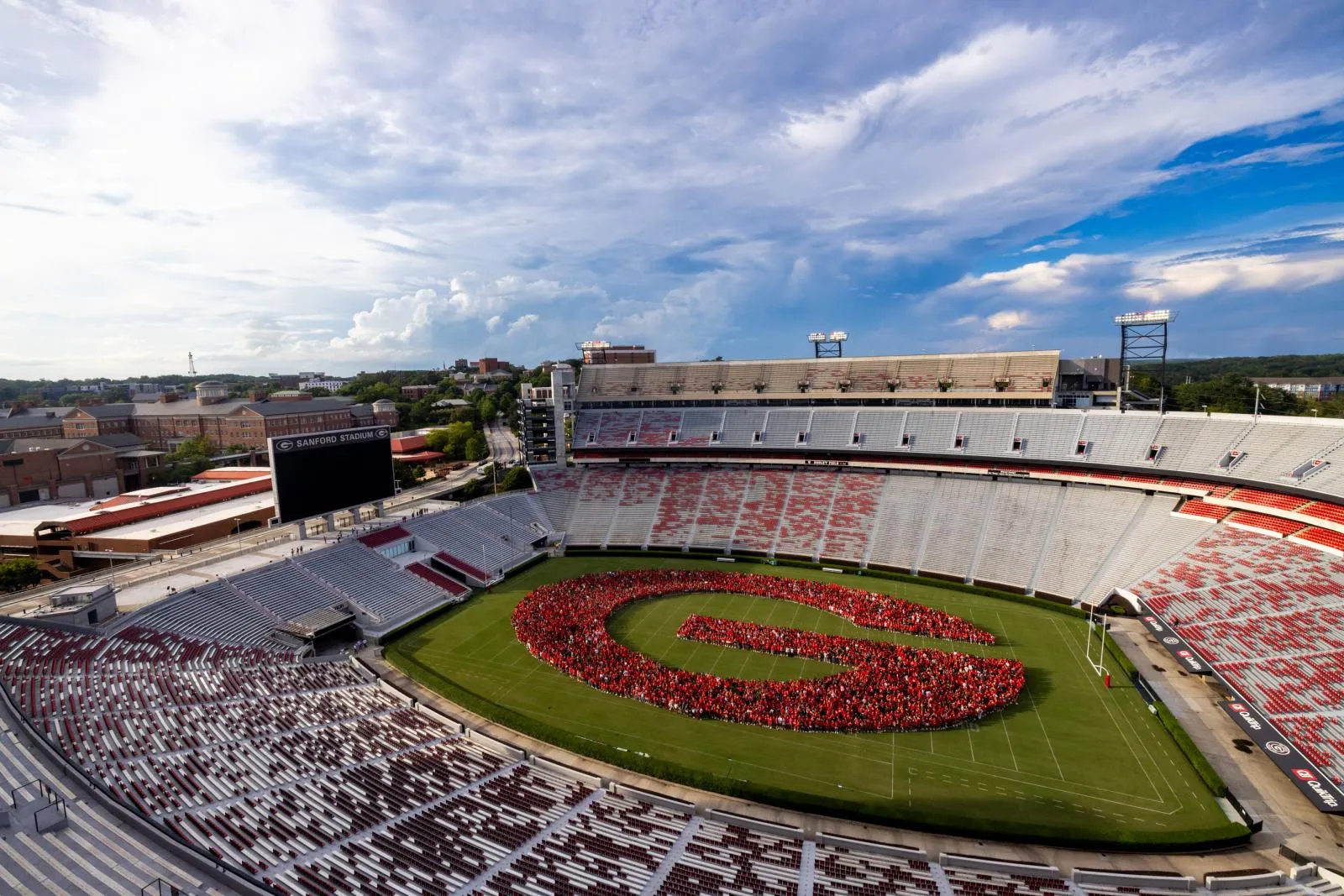 Members of the the incoming freshman class form the Power G for the annual class photo inside Sanford Stadium before the start of fall semester.