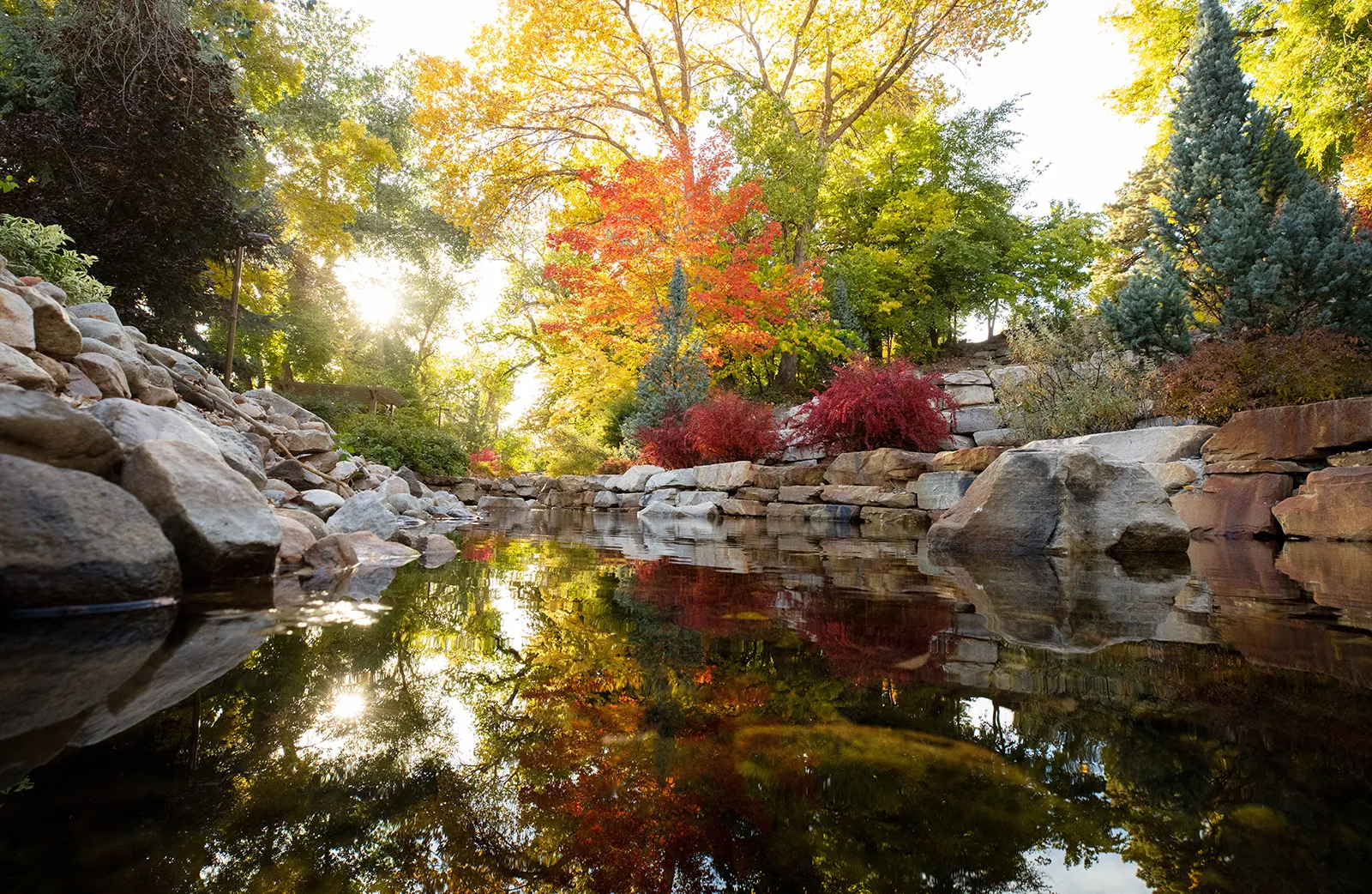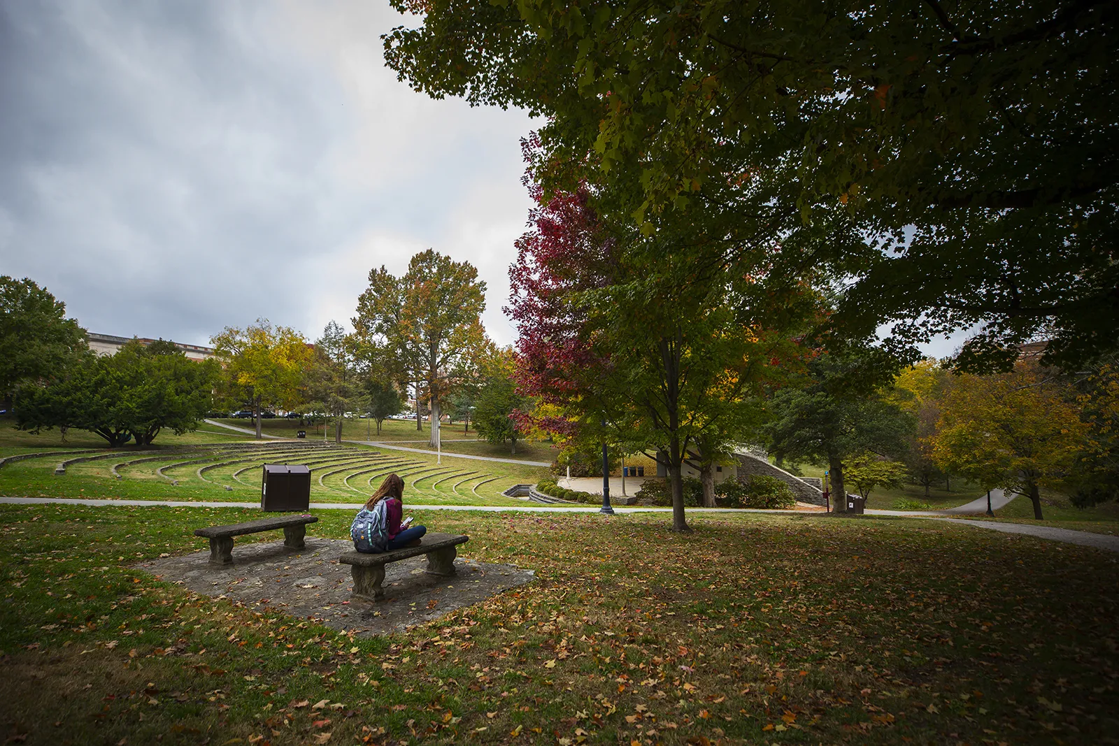 A student kicks back and enjoys a front row seat to the fall colors on campus.