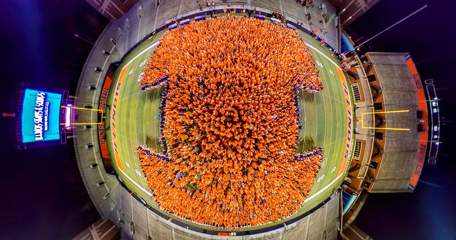 Memorial Stadium is home for many things, from football to commencement. Today, this birds-eye view shows the incoming class of 2023.
