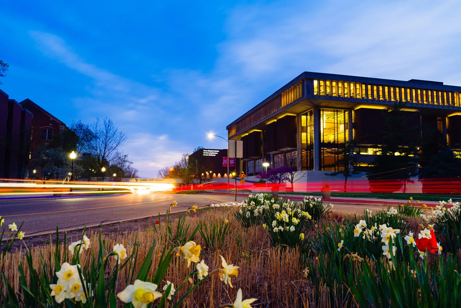 Long exposure of the campus at dusk. 30 second exposure with an ND filter.
