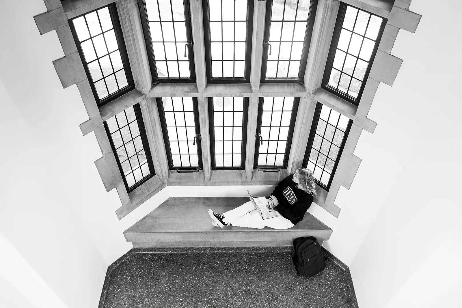 Window seats in the newly renovated Merrifield Hall provide a cozy study spot.