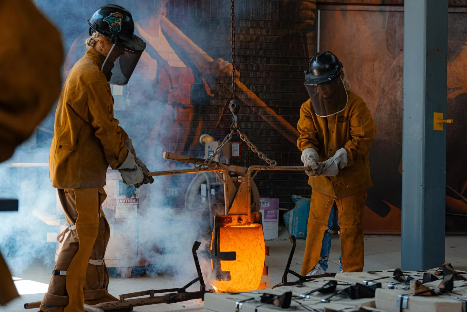 A bird sits inside Monty's mouth as Spring blooms around campus.