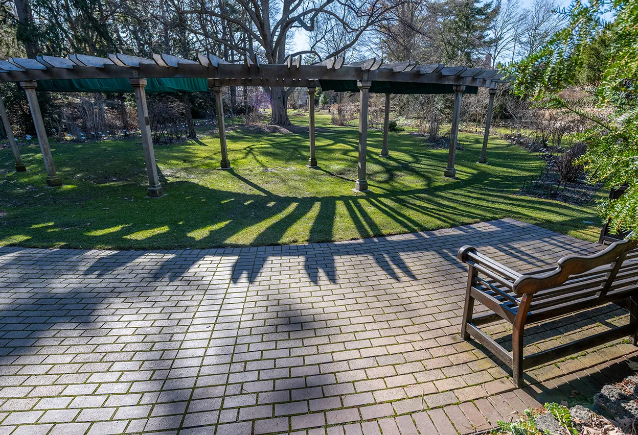 Shadows as clock from the pergola in the William J. Beal Botanical Garden four days before the start of Daylight Saving Time