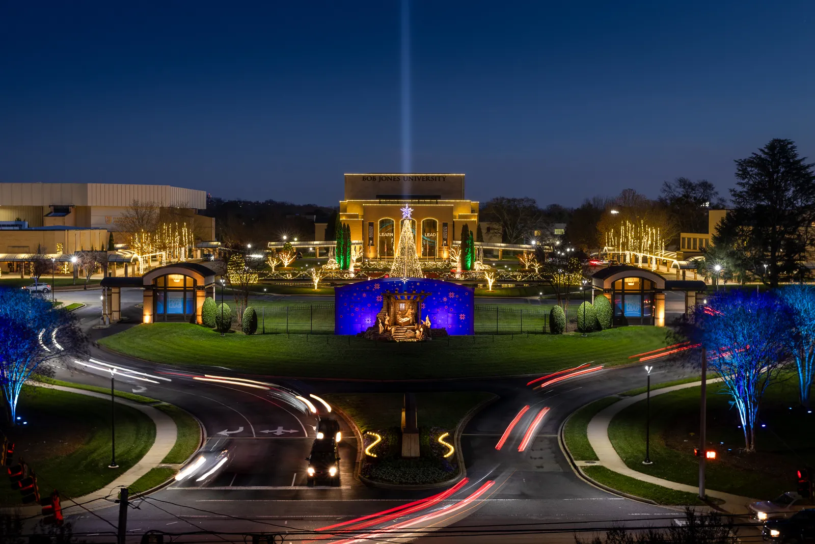 The school owns a tall apartment building that overlooks the front campus. I stood on top of the building to capture a long-exposure shot of the campus all lit up.