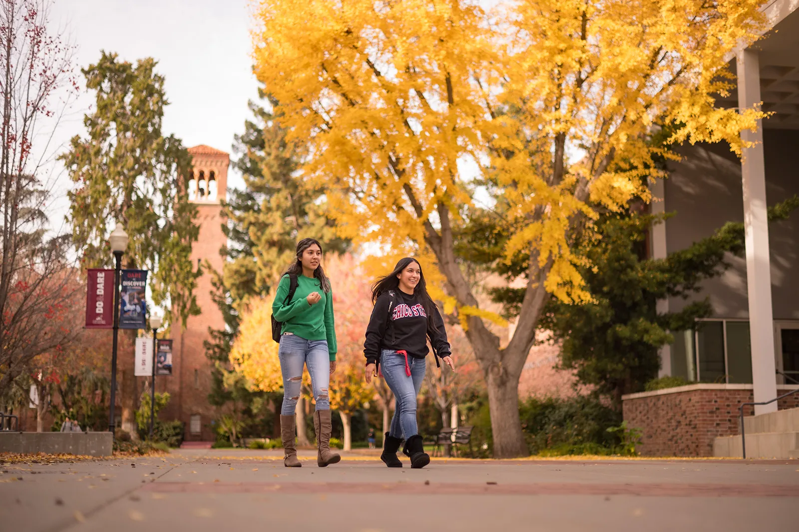 Jaqueline Reynoso (left) and Bianca Amaya (right) walk through campus in the fall season on Tuesday, December 5, 2023.