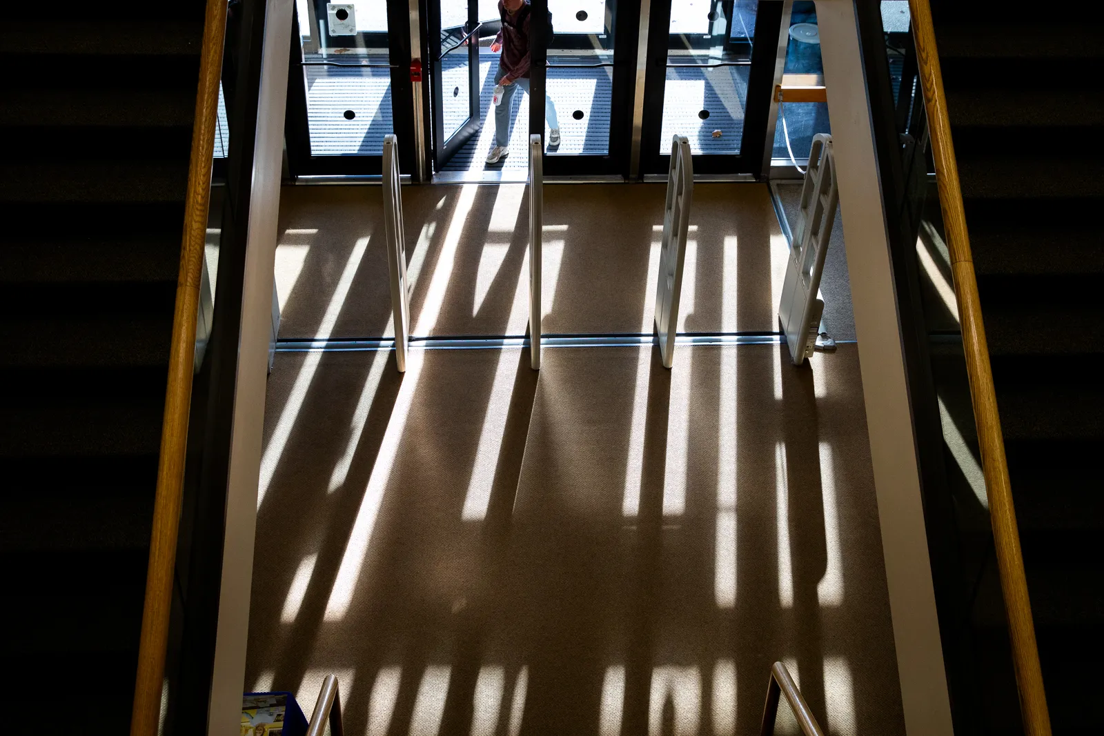 Inside the Abbott Hall library at the entrance coming from the Diefendorf loop taken in November 2023. Photographer: Meredith Forrest Kulwicki