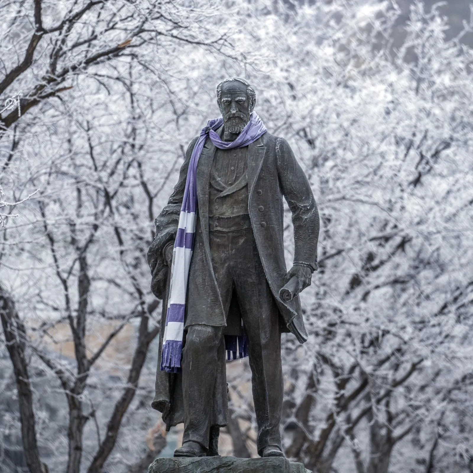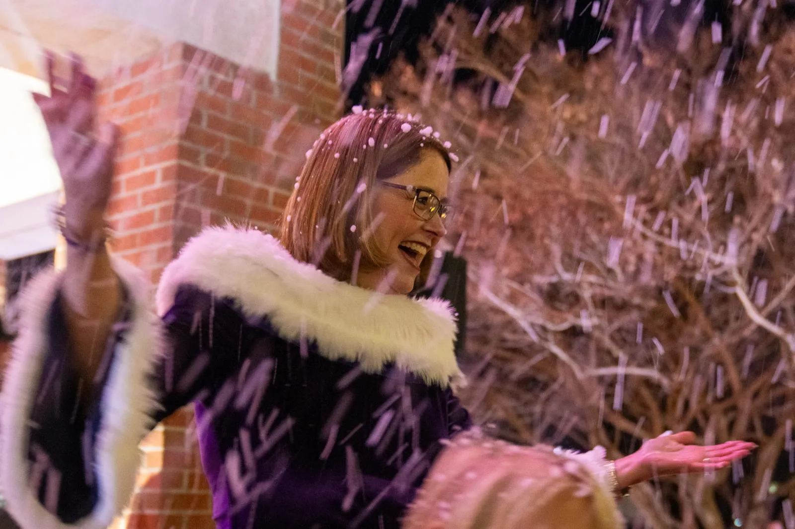 Chancellor of WCU, Kelli R. Brown, blissfully plays in the snow that was featured at our annual Holidays on the Plaza event.