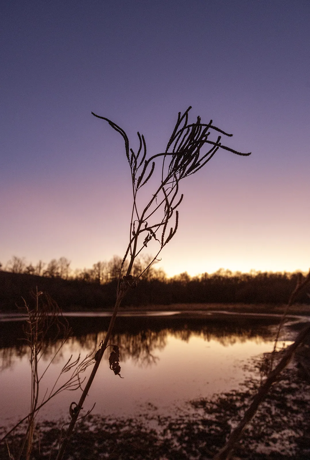 The sun sets over Perry Pond on the Conard Environmental Research Area on a calm December evening.