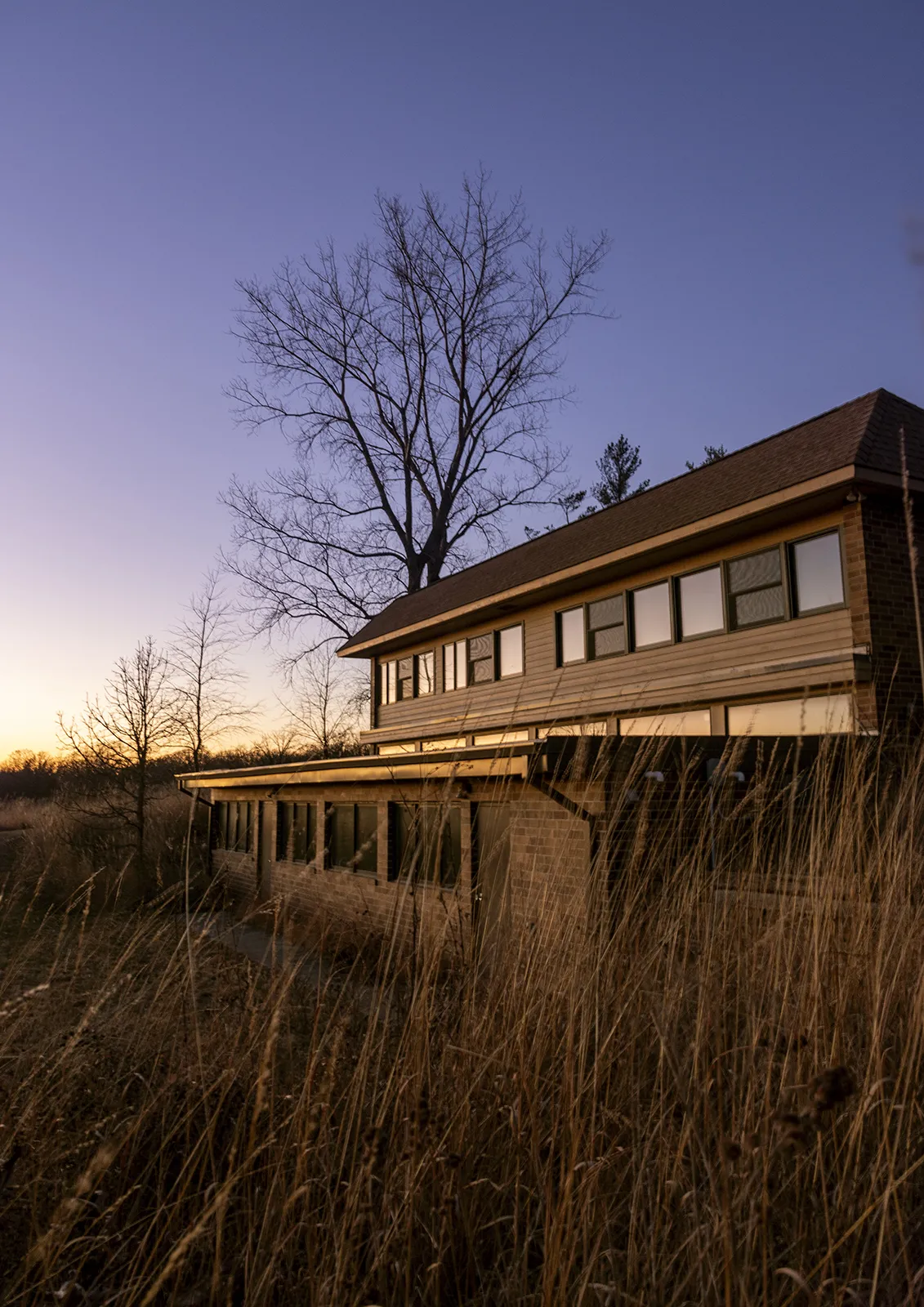 The sun sets over the Graham Lab at the Conard Environmental Research Area.