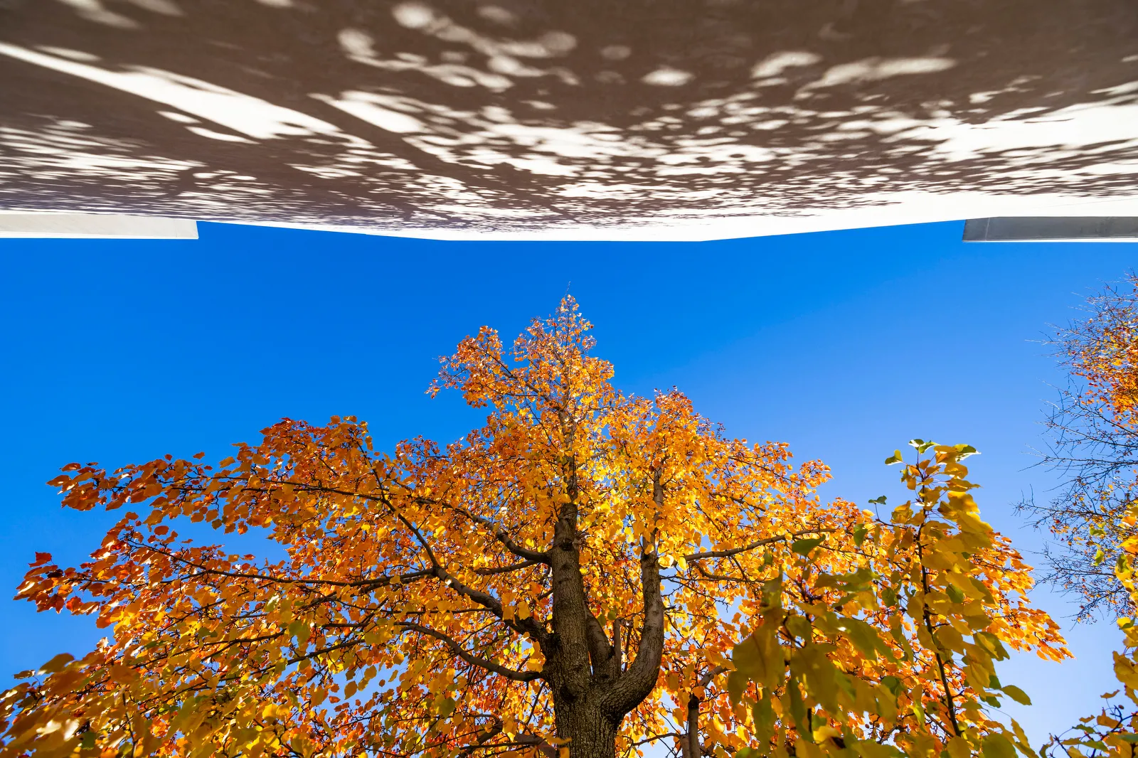 A tree casts a shadow on Wiekamp Hall Monday, Nov. 13, 2023, on campus at IUSB.