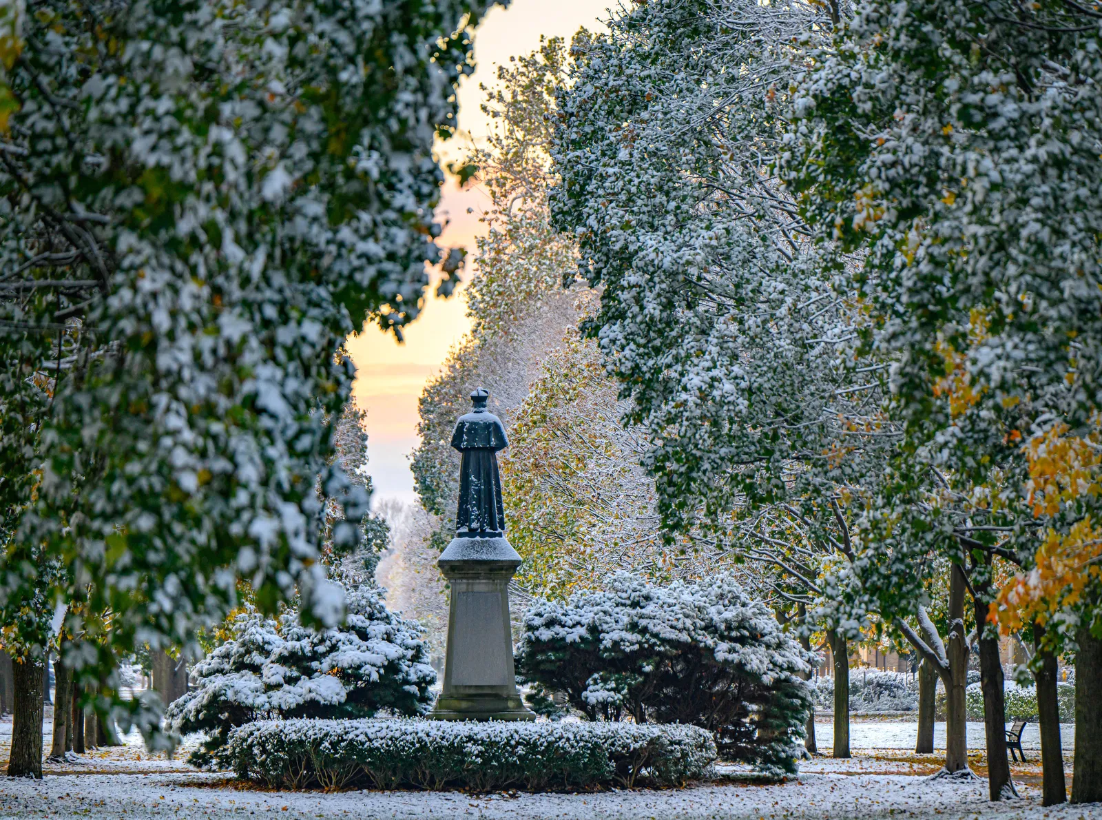 An early snow coated trees which hadn't yet dropped their fall leaves.