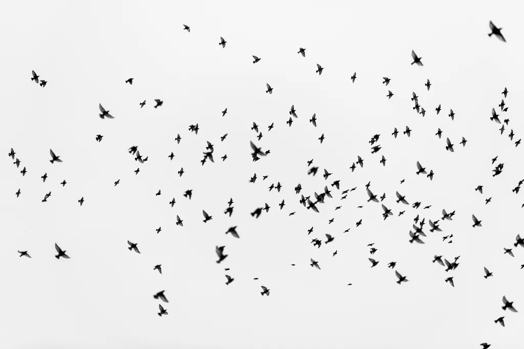 Birds fly over the Allendale Campus during one of the first snowfalls of the month.