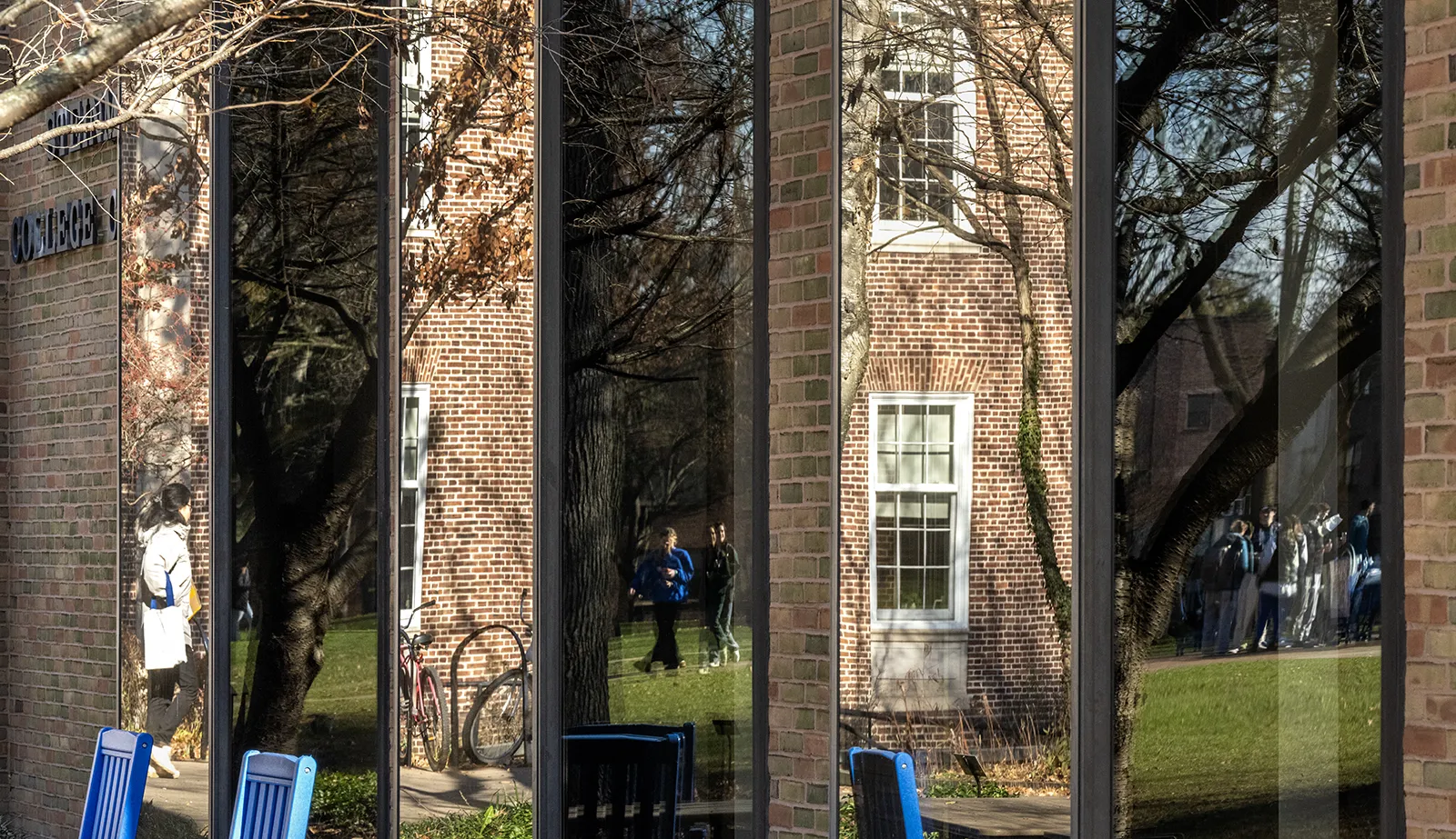 Separate moments are all collected and reflected in the multiple bay-windows of the student center.