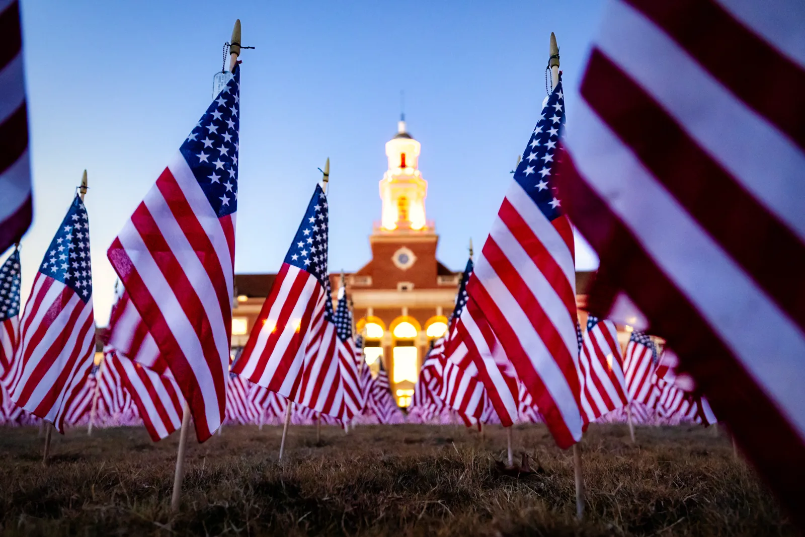 Thousands of American Flags on placed on Library lawn - each one representing a veteran who made the ultimate sacrifice since the 9/11 terrorist attacks. The flags were on display throughout the week of Nov 6-11th in front of Edmon Low Library.
