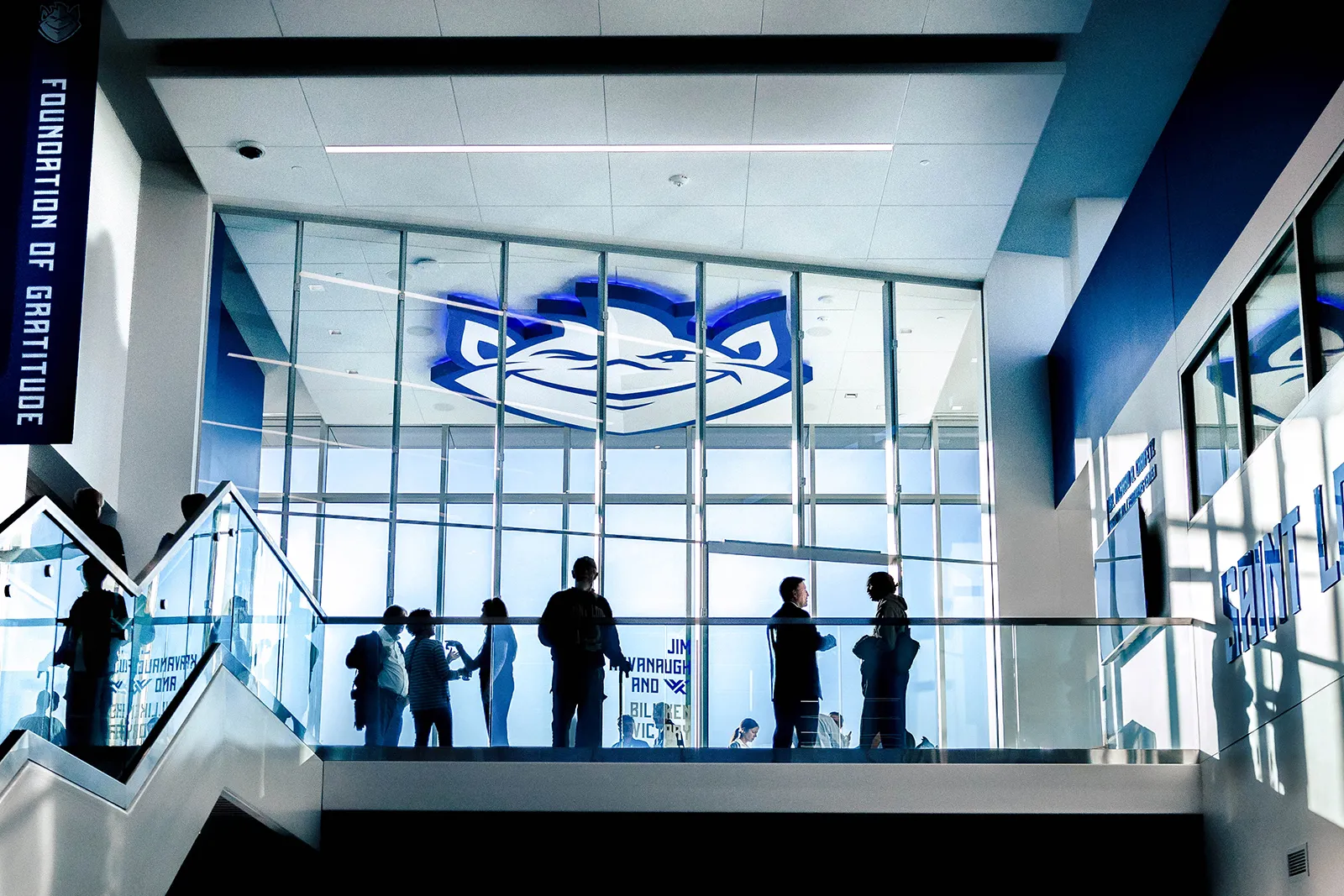 People tour the new O'Loughlin Family Champions Center during the grand opening celebration on October 9, 2023.