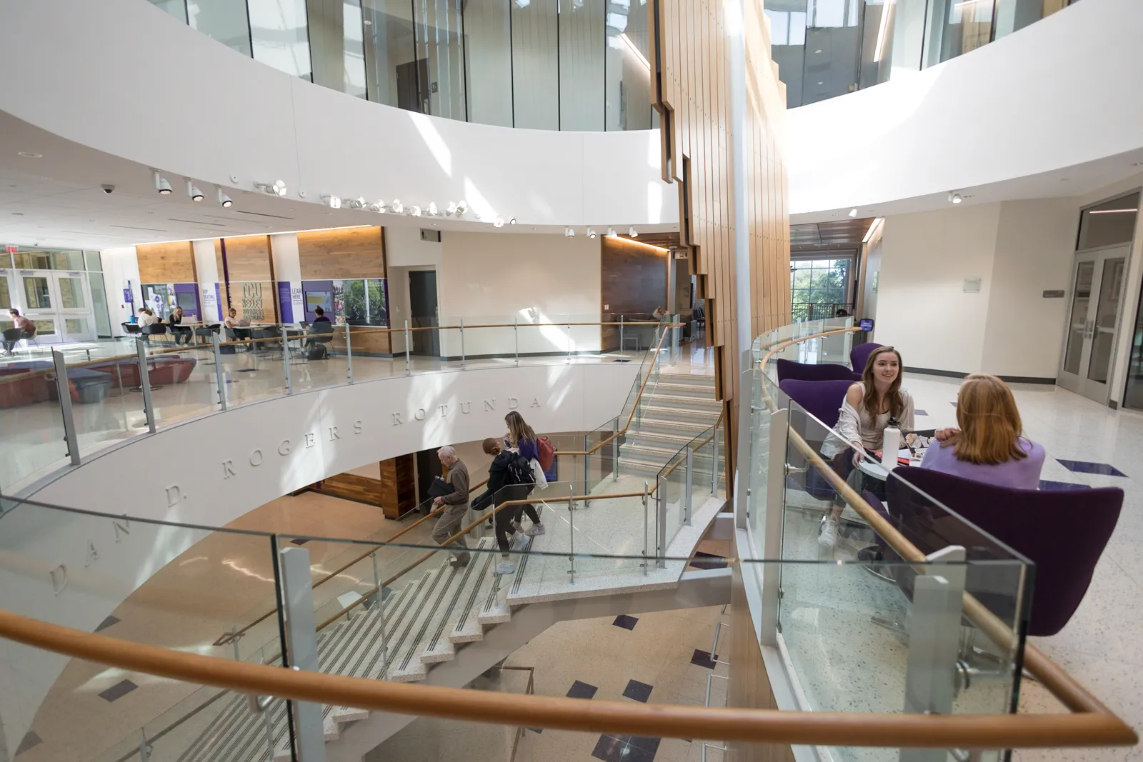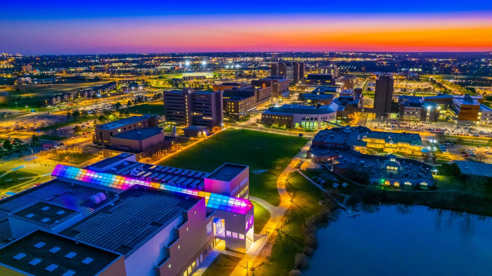 The Center for the Arts celebrates UB Pride Week by illuminating their roof in Rainbow Pride colors.