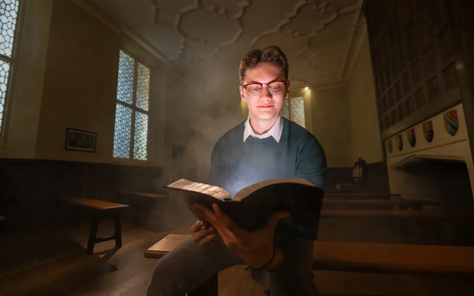 Photo of Biblical Studies student Nathan Monier in the university’s prayer room.