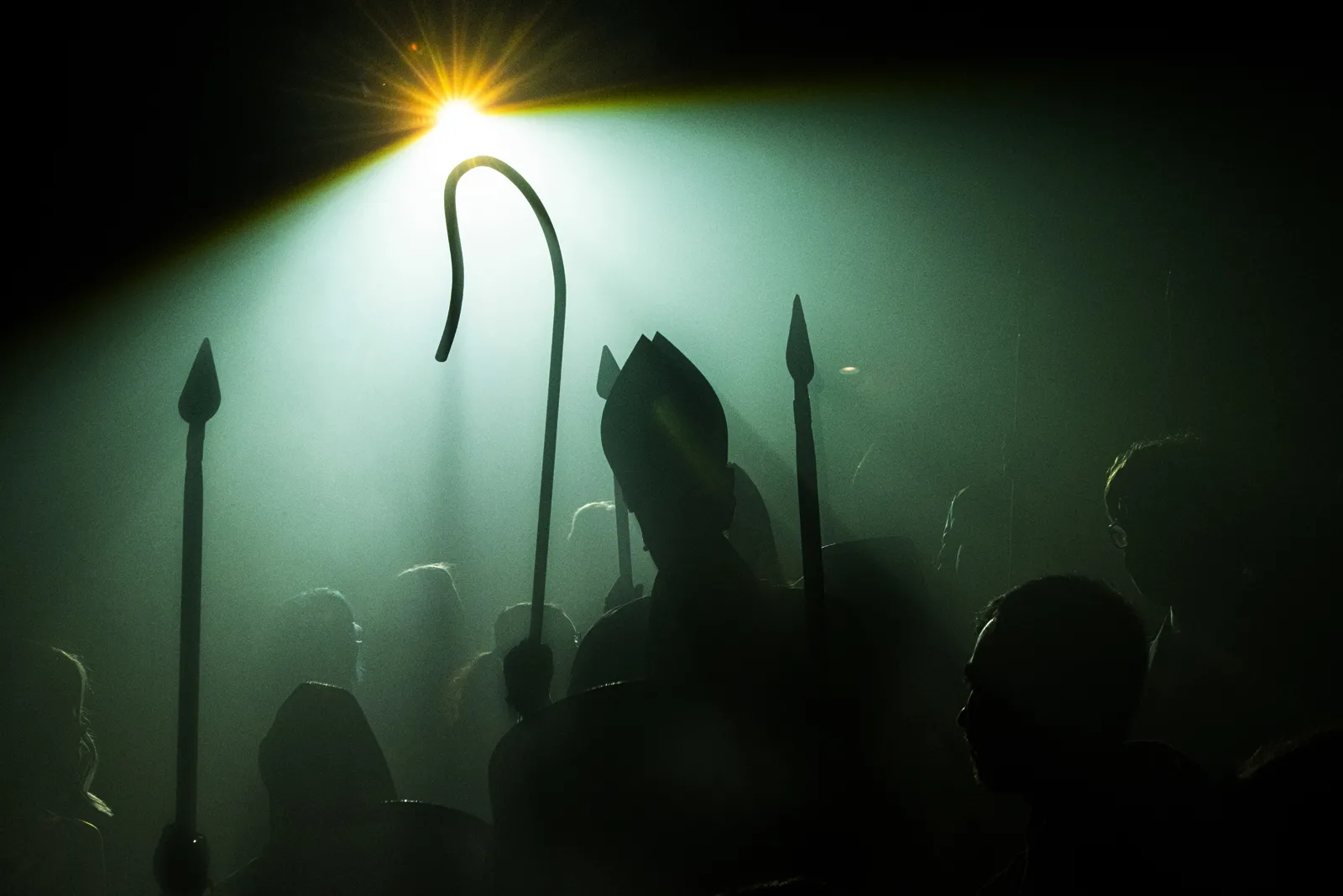 St. Patrick, flanked by his guards and court, enters through the crowd to begin the ceremony for honorary knights as part of a unique campus celebration for the 114th year.