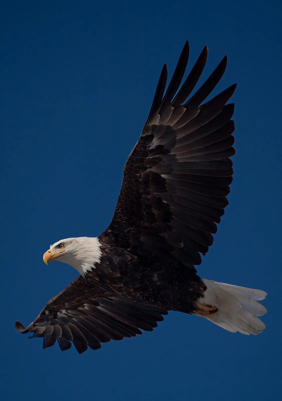 An eagle soars over the river that flows through campus on a cold January morning.