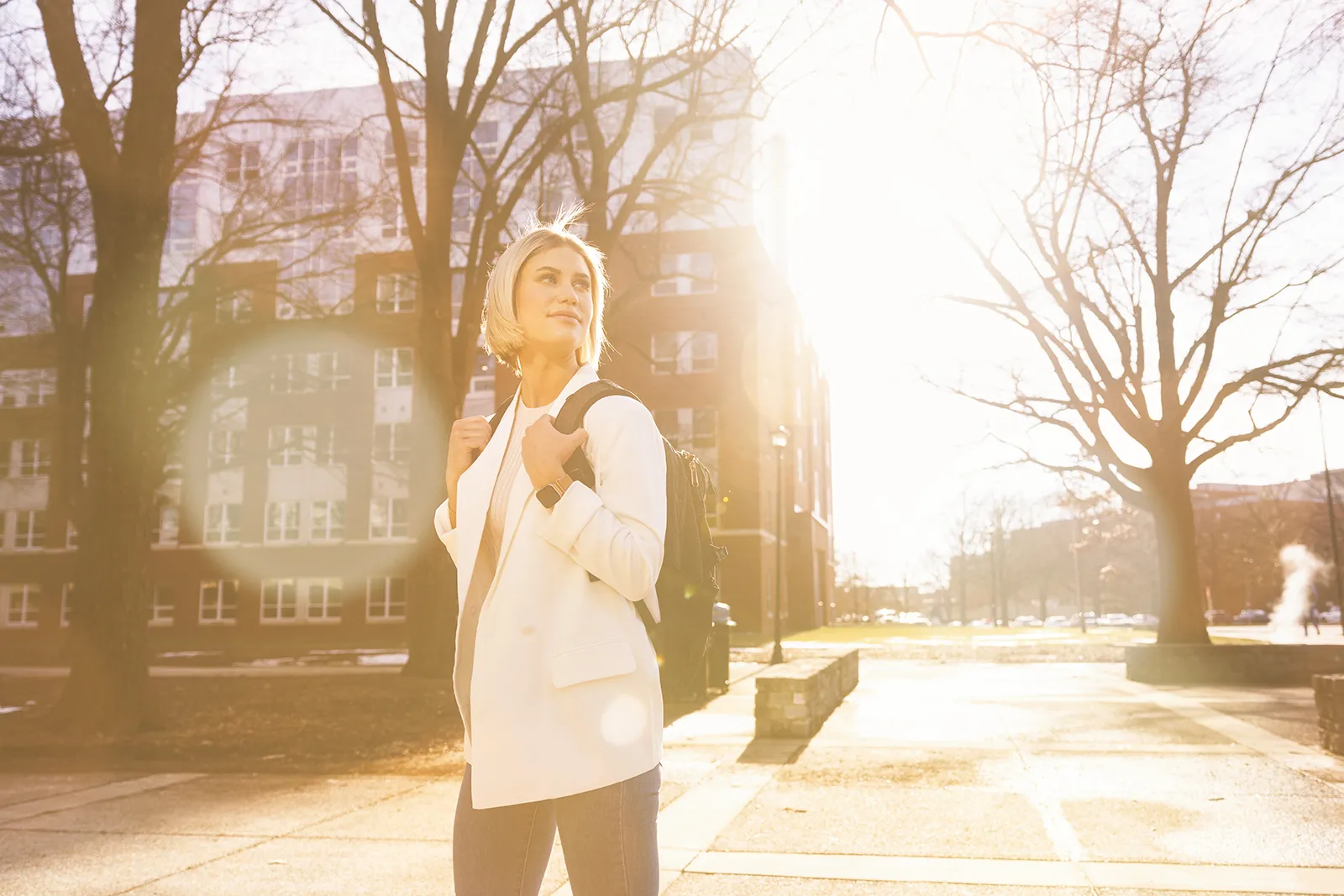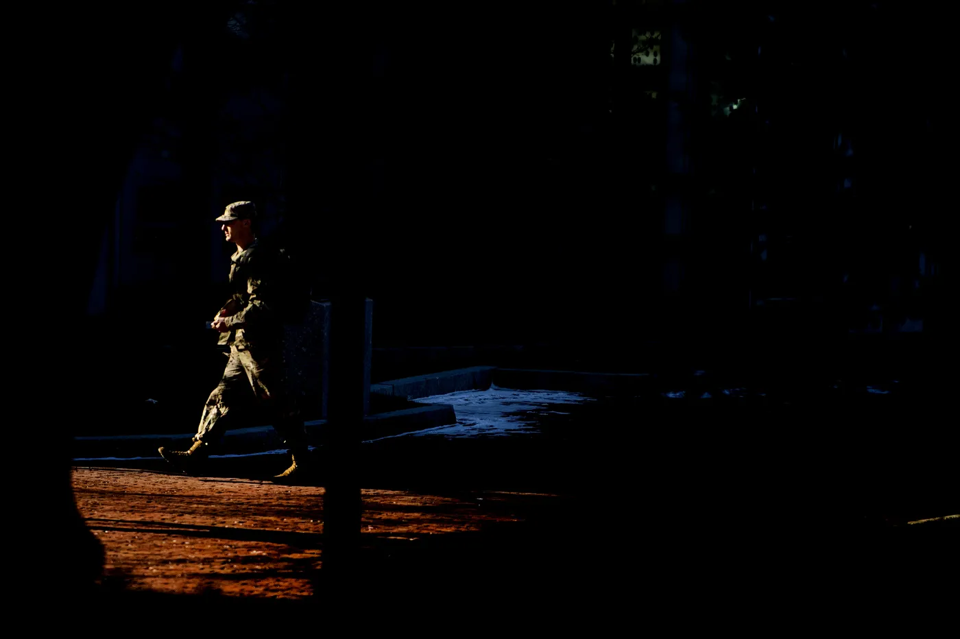 A member of the ROTC walks through campus during class break.