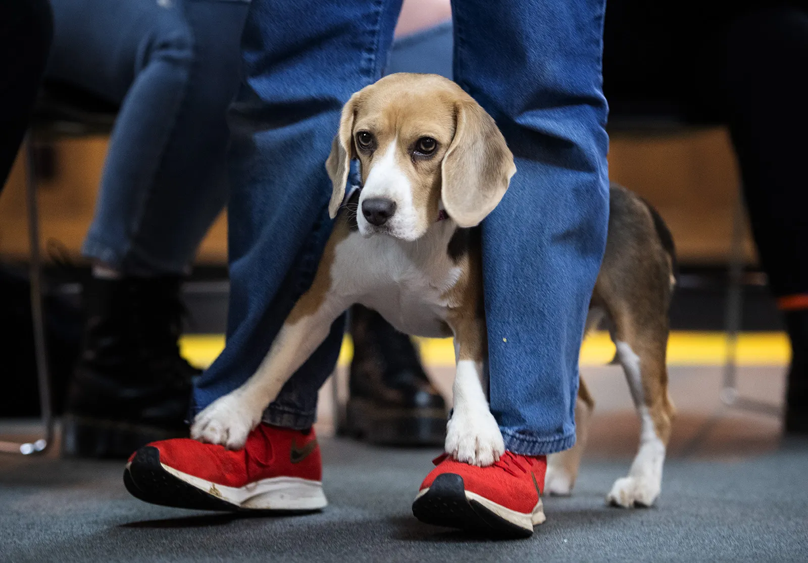 The university brought in therapy dogs for stress-relieving study breaks for students during finals week.