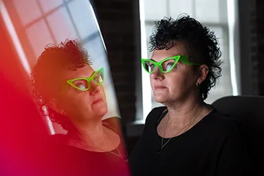 Graphic design student Ambre Armstrong for a story on her working full time as a UK student.