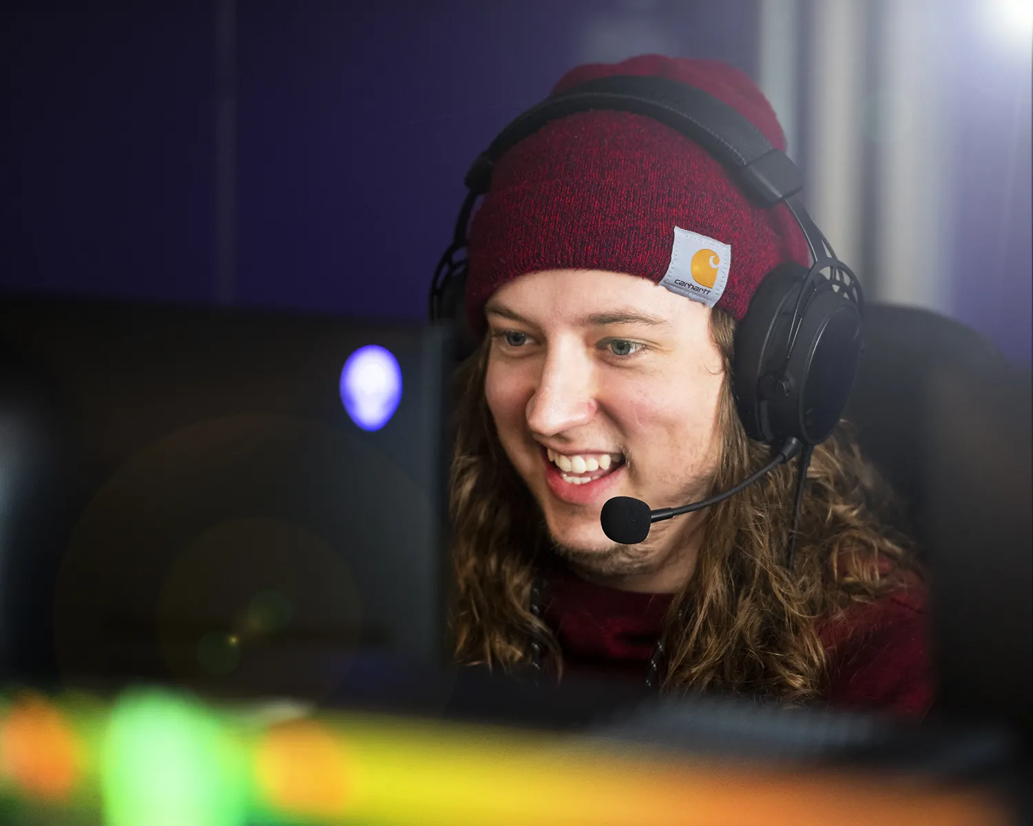 A student gamer in the newly unveiled Digital Recreation Center on campus.