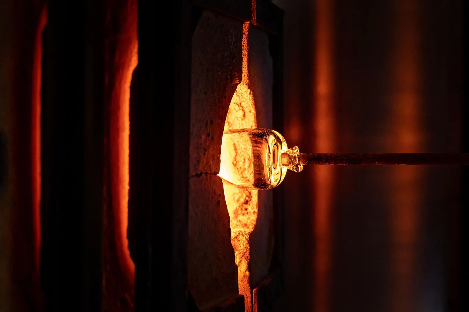 A glass piece is place into the furnace as students create unique glassware in their Glass Art (ARTS 276) class on Tuesday, September 28, 2021.
