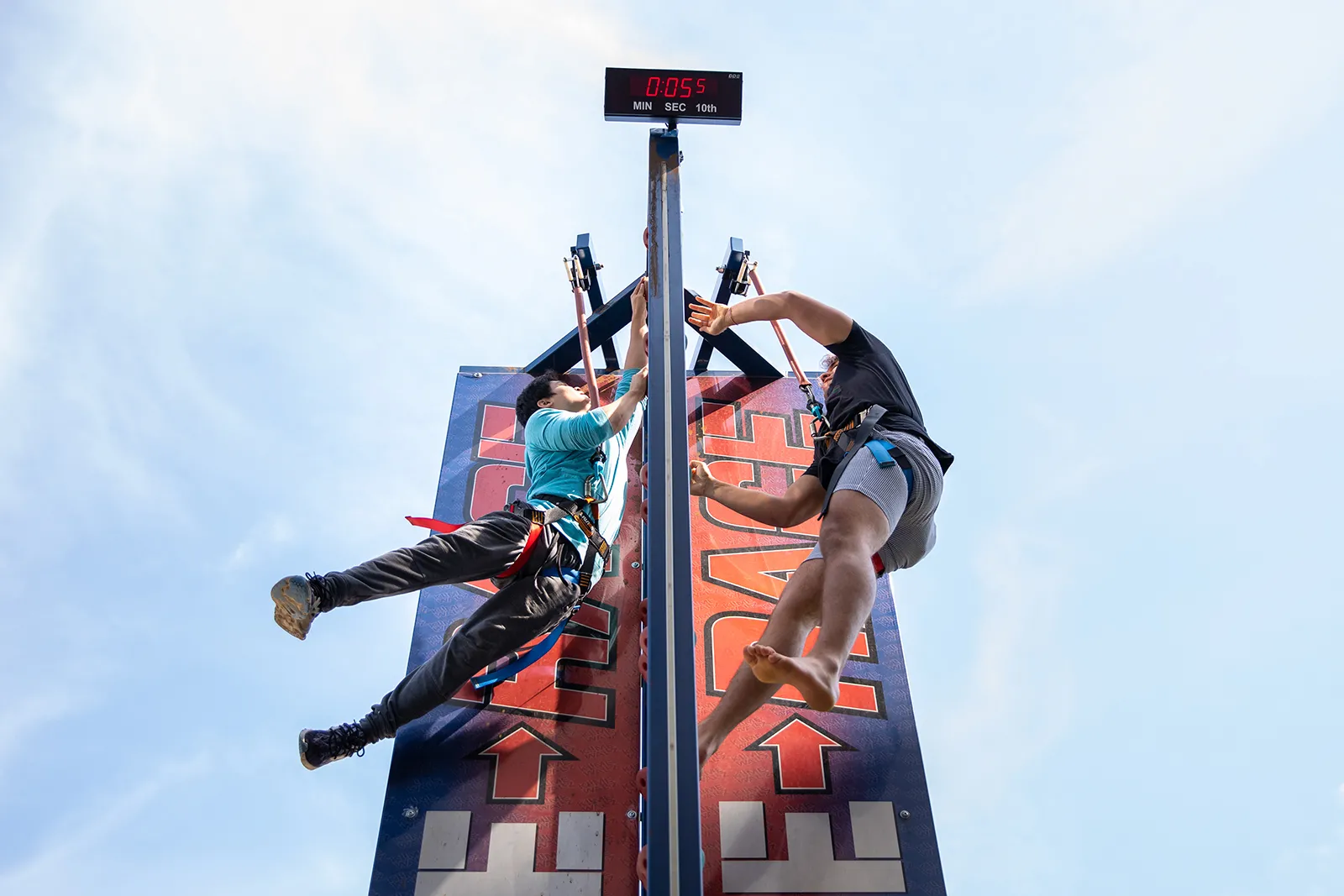 The Student Association (SA) hosts Spirit Week in September 2021 around the Student Union. The Monday activities for students included window painting, rock wall climbing, sumo wrestling, and the stunt jump.