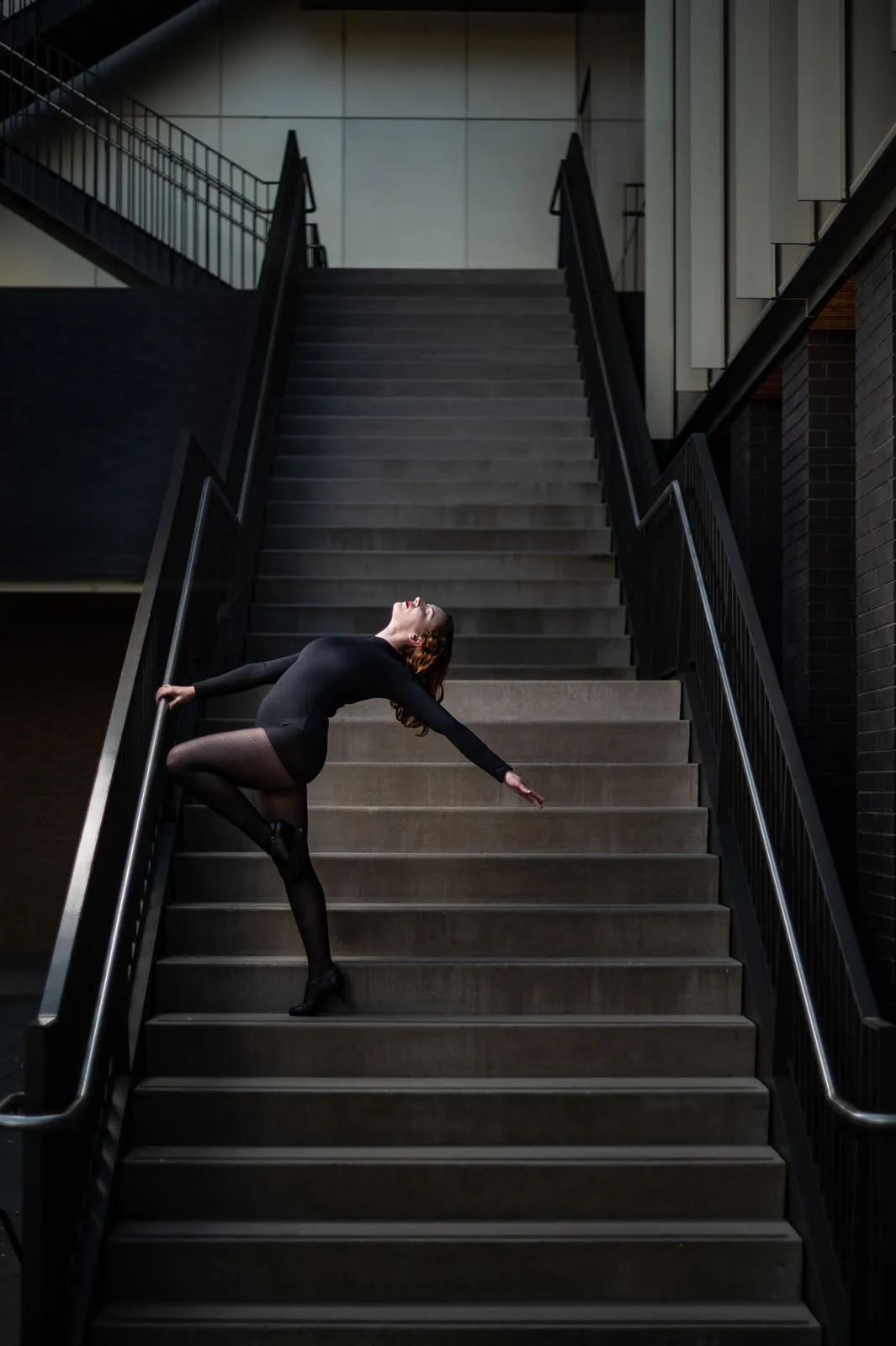 Dancer Emily Beets poses in different forms on the steps of the Arts & Humanities courtyard on Friday, April 2, 2021. Beets is one of several students who have been fighting to keep up their technique during the impacts of the COVID-19 pandemic, which was not able to occur in a traditional classroom.