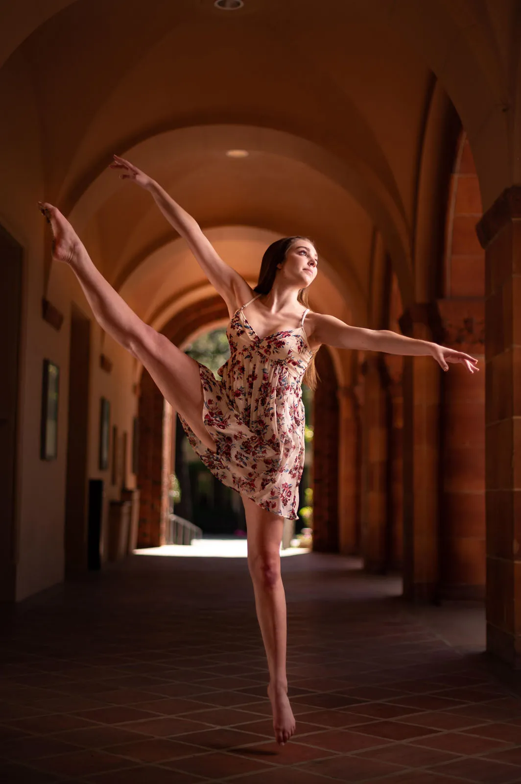 Dancer Jordan Kopp poses in different forms under the arches of Laxson Auditorium on Monday, April 12, 2021. Kopp is one of several students who have been fighting to keep up their technique during the impacts of the COVID-19 pandemic, which has not allowed them to be in a traditional classroom.