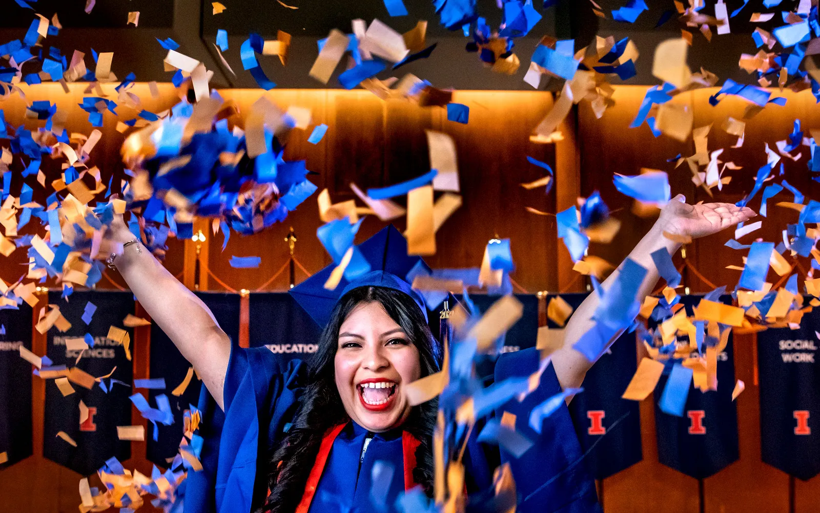 Confetti flies for this graduate as the 2021 Commencement will include both an in-person event for students and two family members, as well as an online component.
