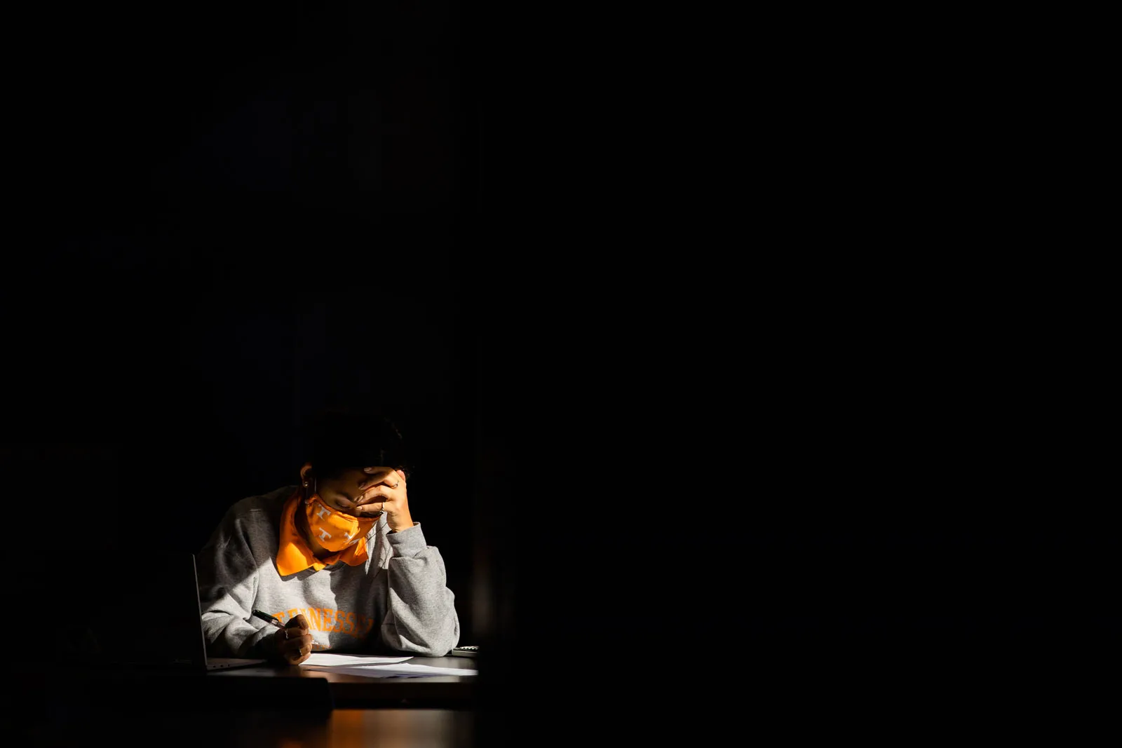Portrait of English professor Peter Leman who has been helping students with mental health issues as he talks about his own.