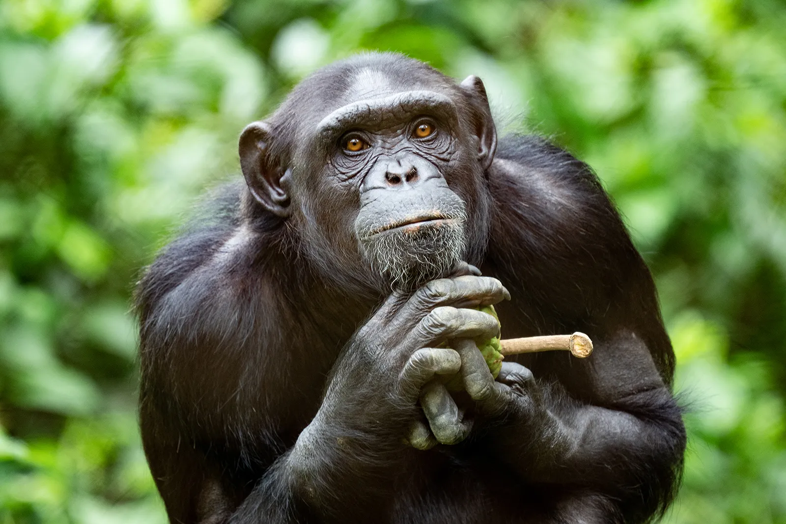 A Chimpanzee can be seen on Sunday, May 11, 2025, at Ape Action Africa in Cameroon, Africa. Ape Action Africa is a non-profit NGO dedicated to the conservation of endangered gorillas and chimpanzees threatened by the bushmeat trade in Central and West Africa.