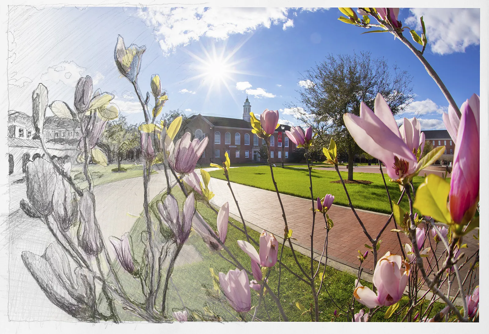 Beautiful spring day on campus. Decided to mix my drawing skills with photography.