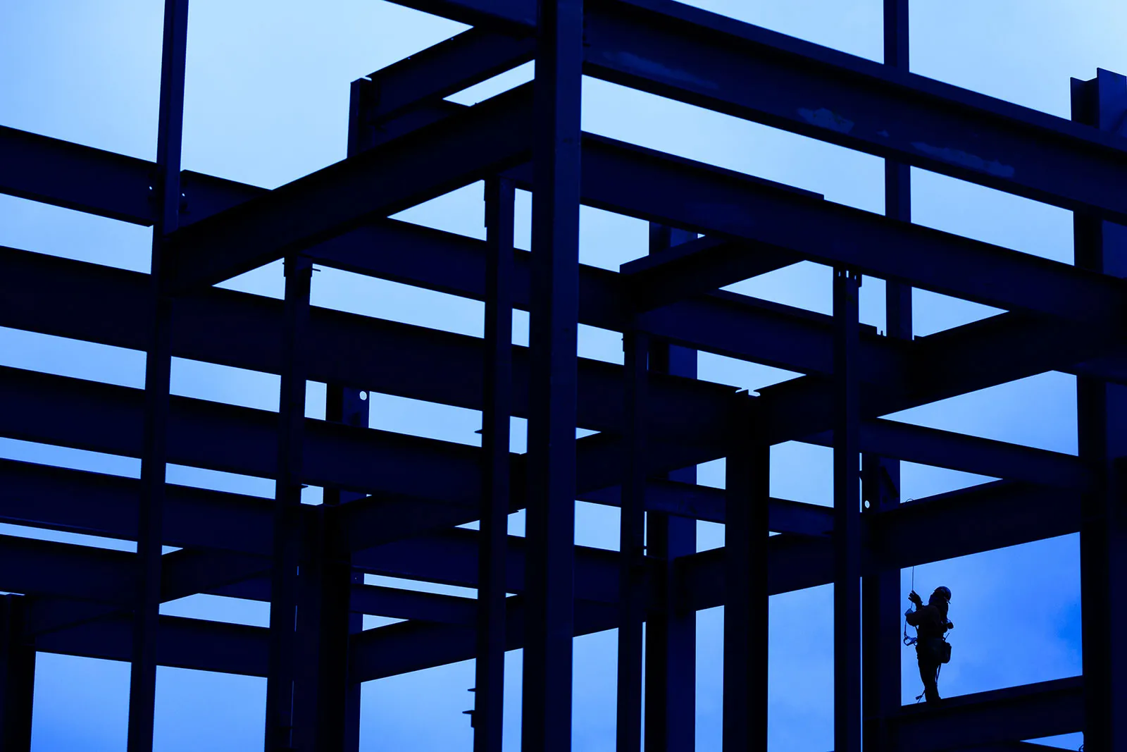 Construction workers set steel in place while working on the future West Campus.