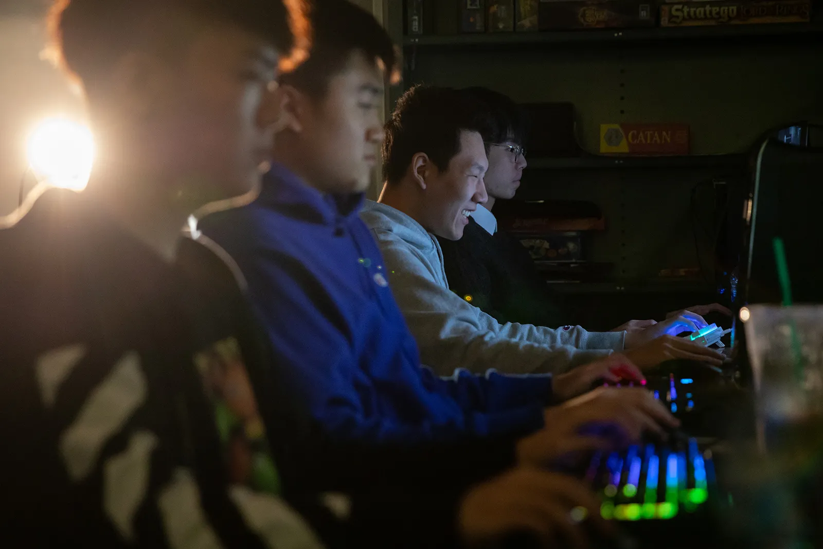 Students with the E-Sports club play the game on computers in a lab on campus.