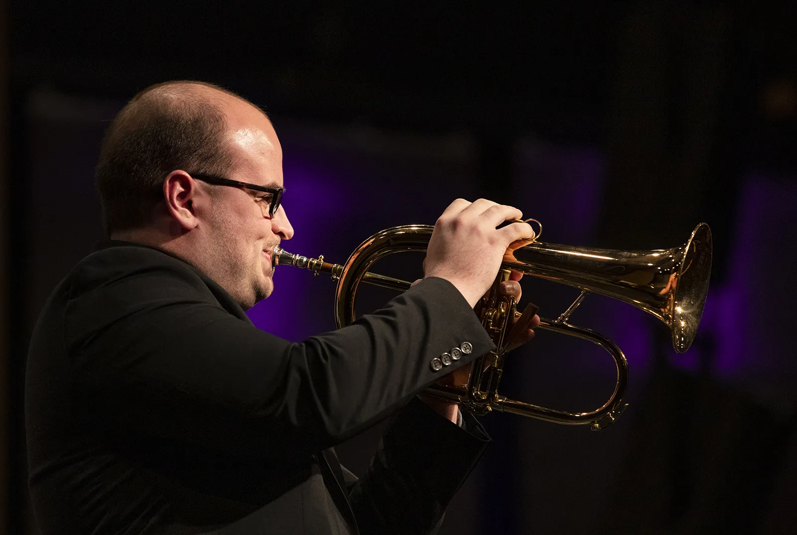 A trumpet player performs a solo during the 65th Annual Tallcorn Jazz Festival and the 69th Sinfonian Dimensions in Jazz Concert presented by the Beta Nu Chapter of Phi Mu Alpha Sinfonia and the School of Music.